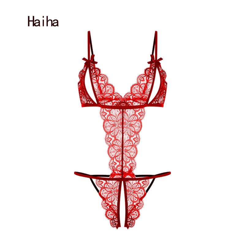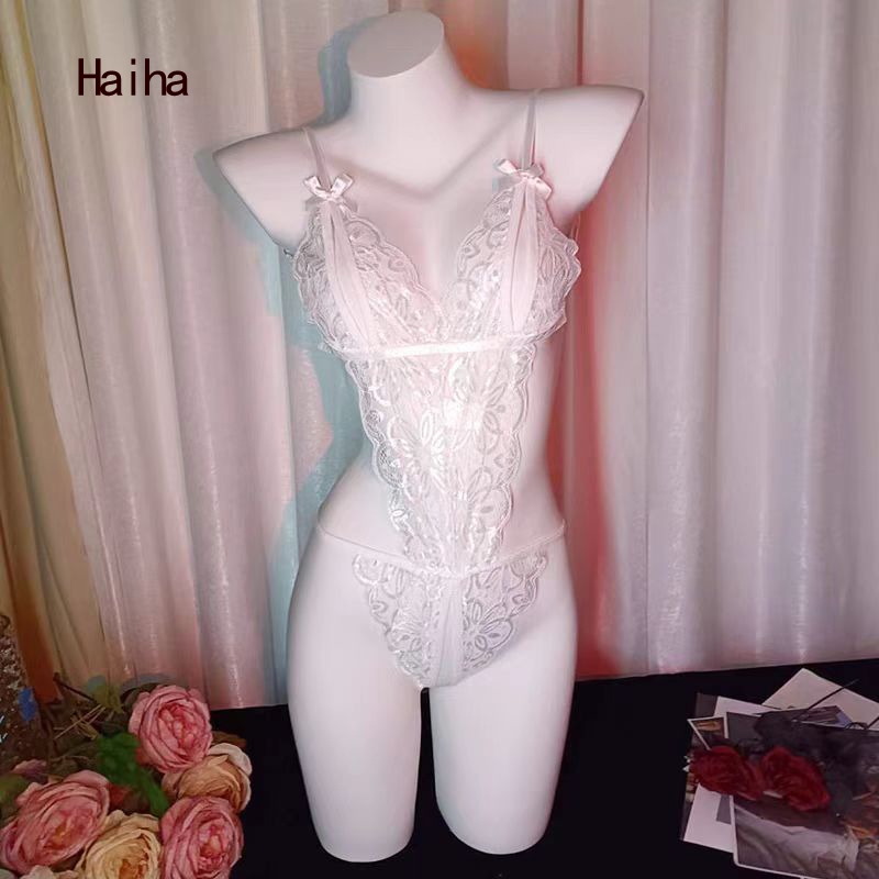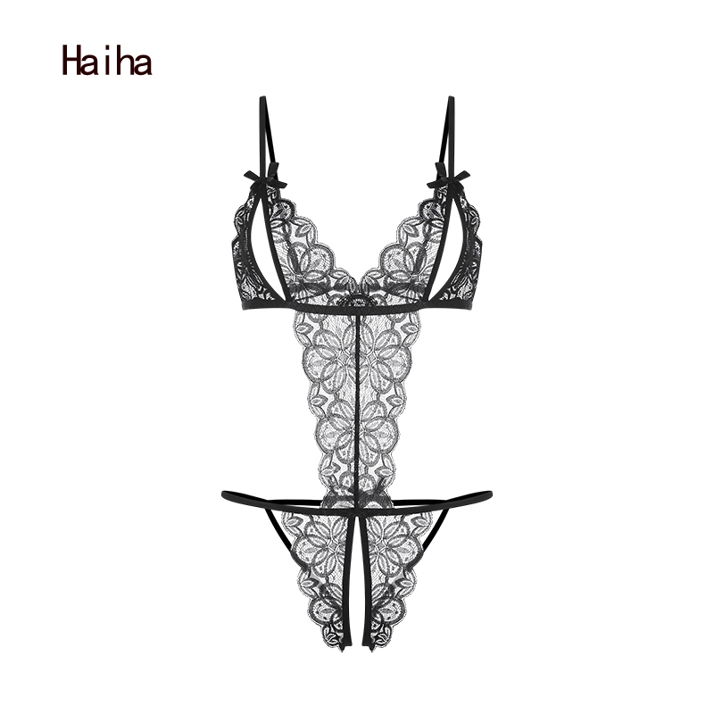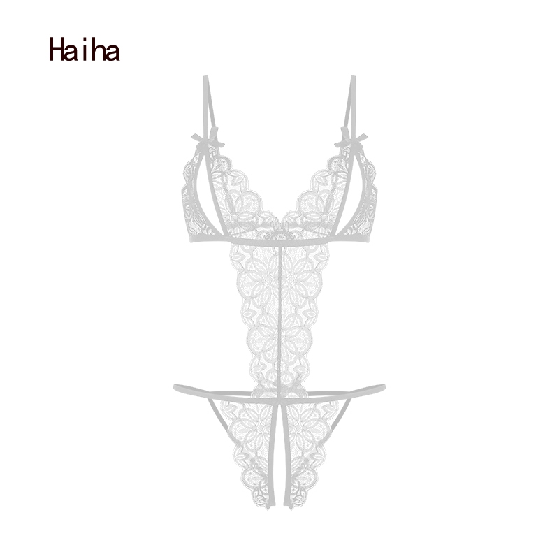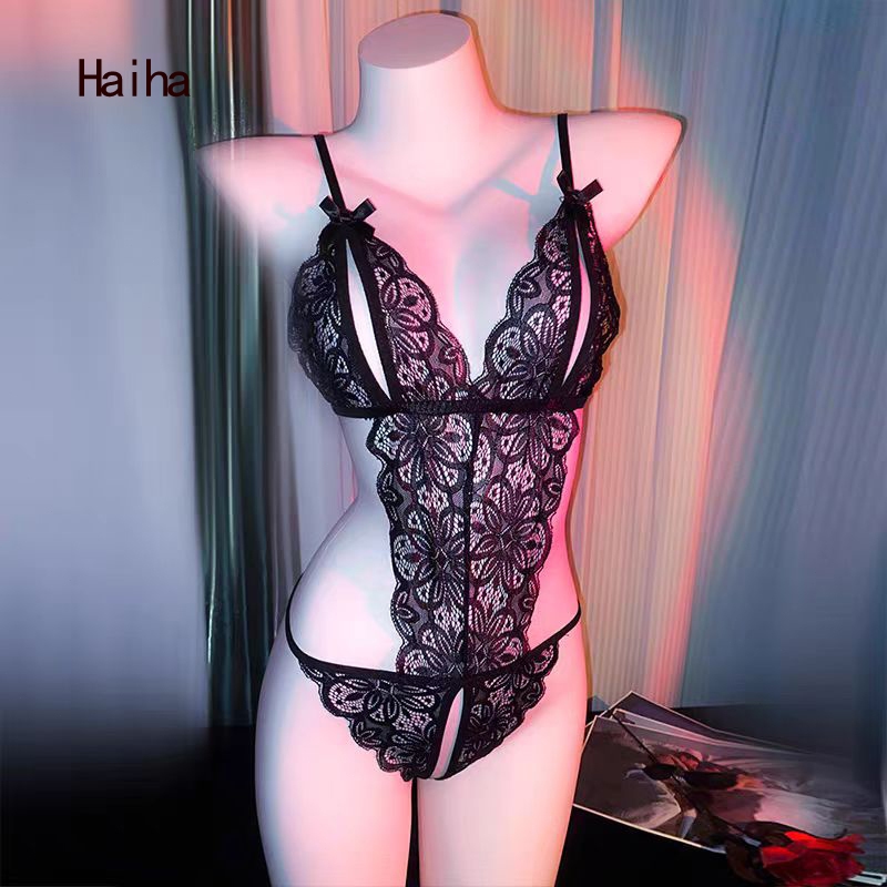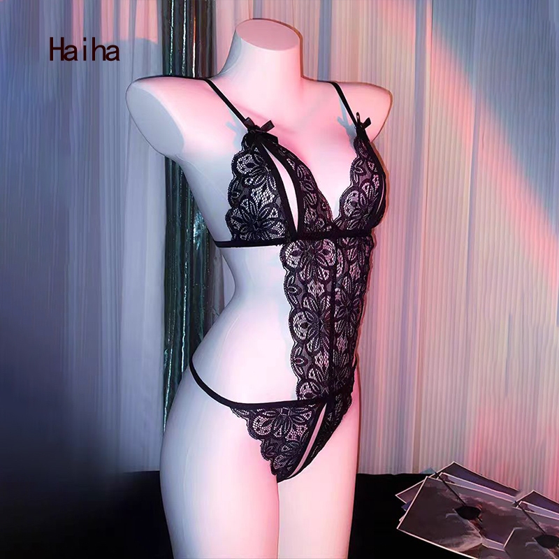 Haiha Sexy Lingerie Open Jumpsuit Sexy Sling Lace Pajamas Women Plus Size baju tidur seksi 情趣内衣