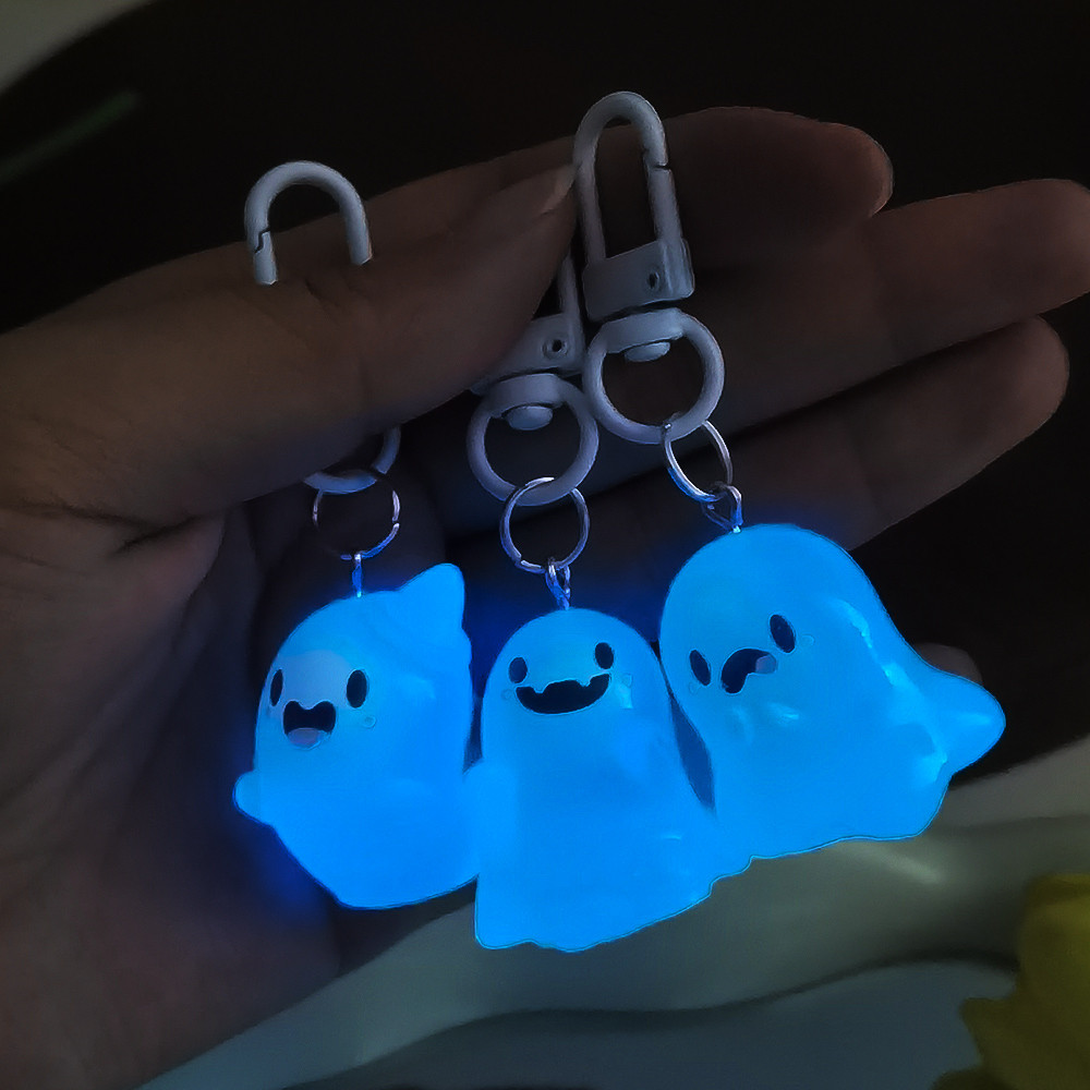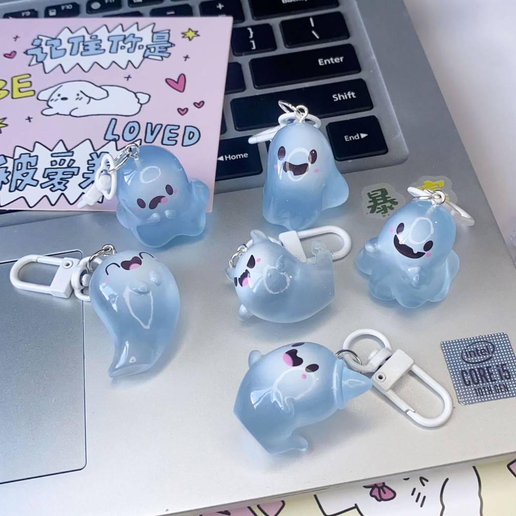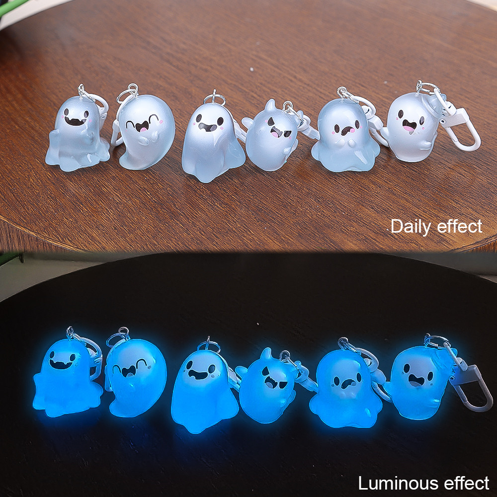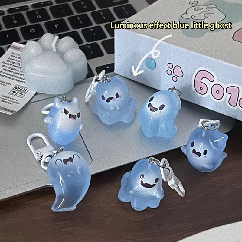 Halloween Luminous Ghost Keychain - 3D Cartoon Cute Mini Resin Keyring - Elf Glow In The Dark Key Holder - Blue Jelly Doll Backpack Pendant Key Chain - Kids Party Gift