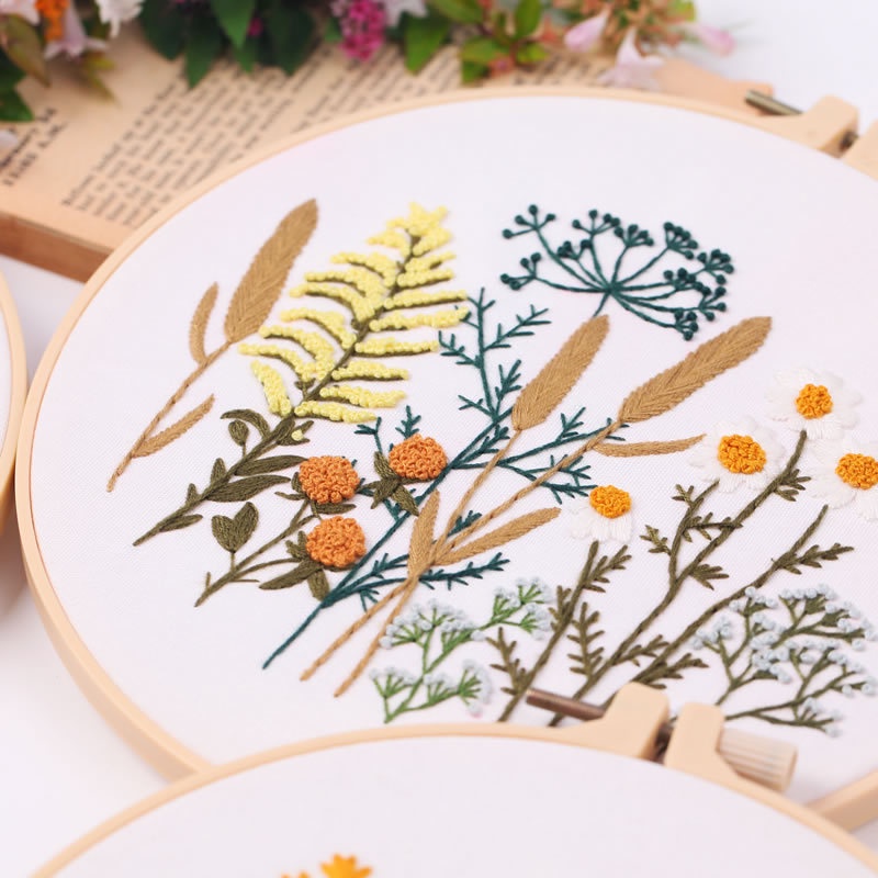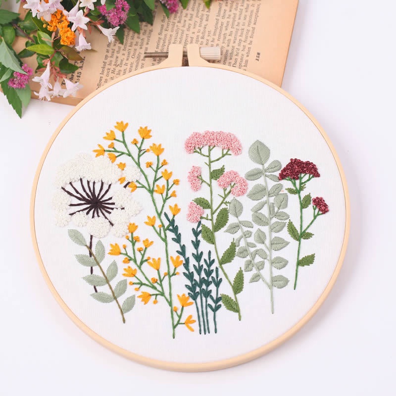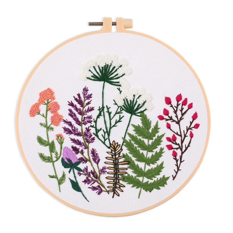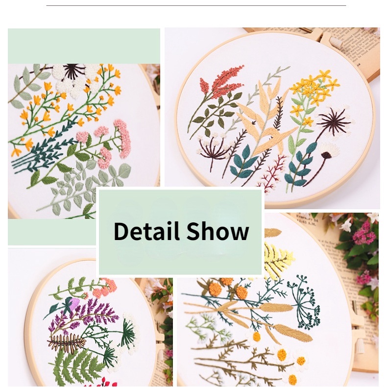 Handmade embroidery kit Adult embroidery kit Beginner embroidery kit, floral pattern, includes embroidery cloth with pattern, embroidery thread, needle and instructio