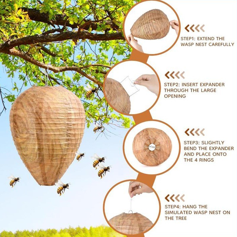 Hanging Fake Wasp Nest Decoy - Waterproof, Realistic - Hornet Fly Catcher - Insect Beehive Paper - Beehive Lantern - Hornets Repellent Traps - Courtyard Decor