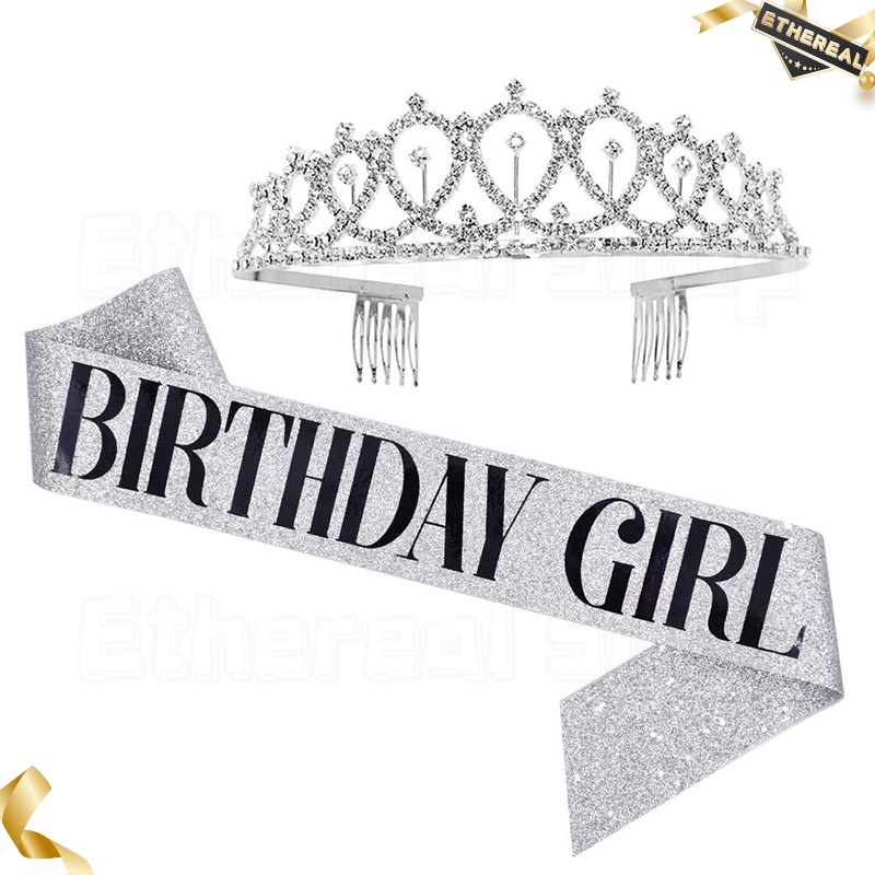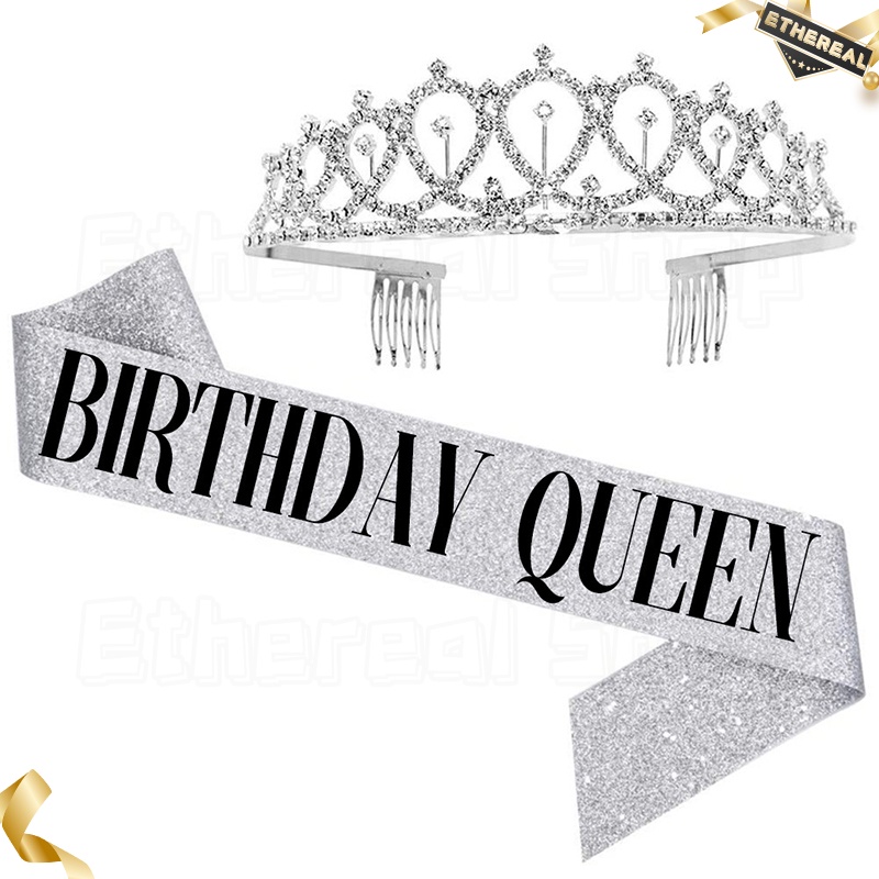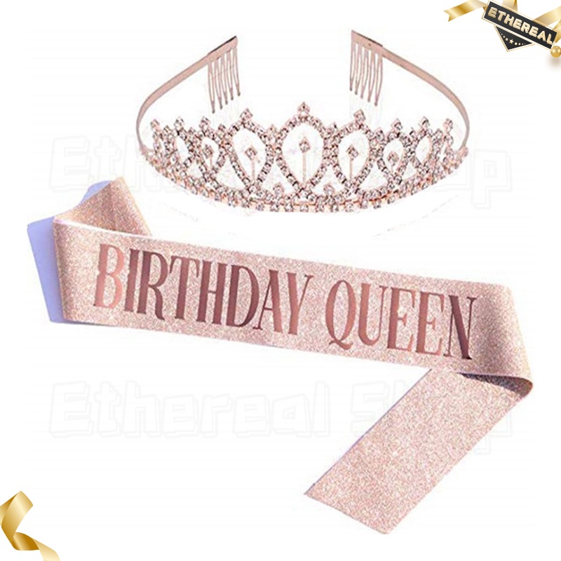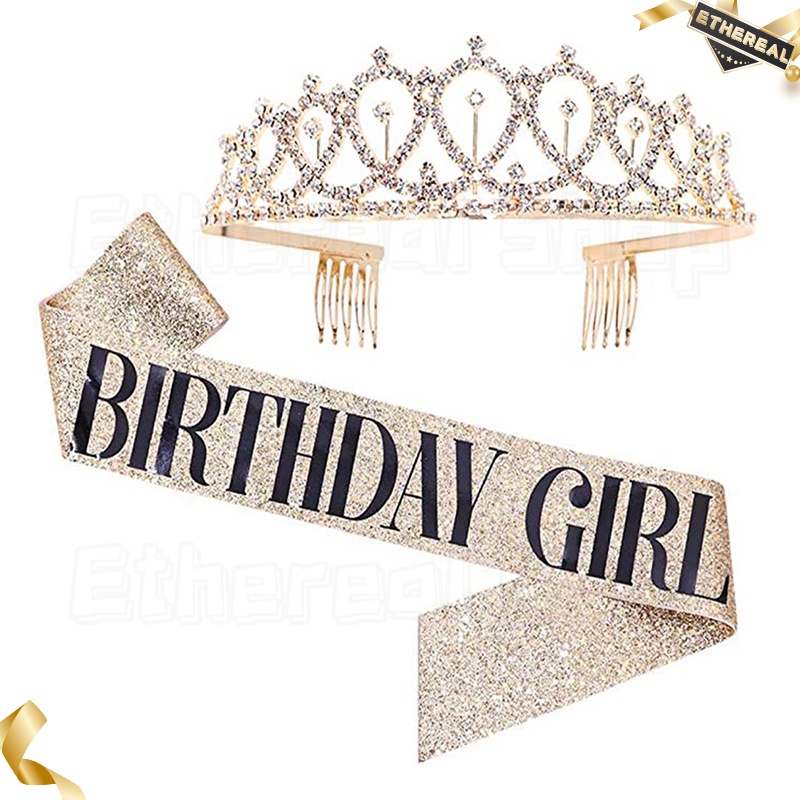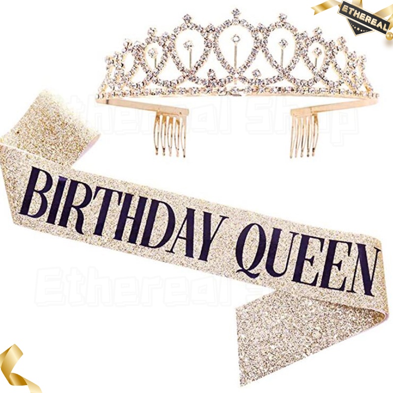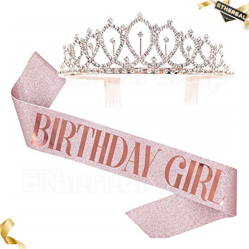 Happy Birthday Sash Crown Set Ribbons Shoulder Girl Princess Queen With Tiara Crown Party Wedding