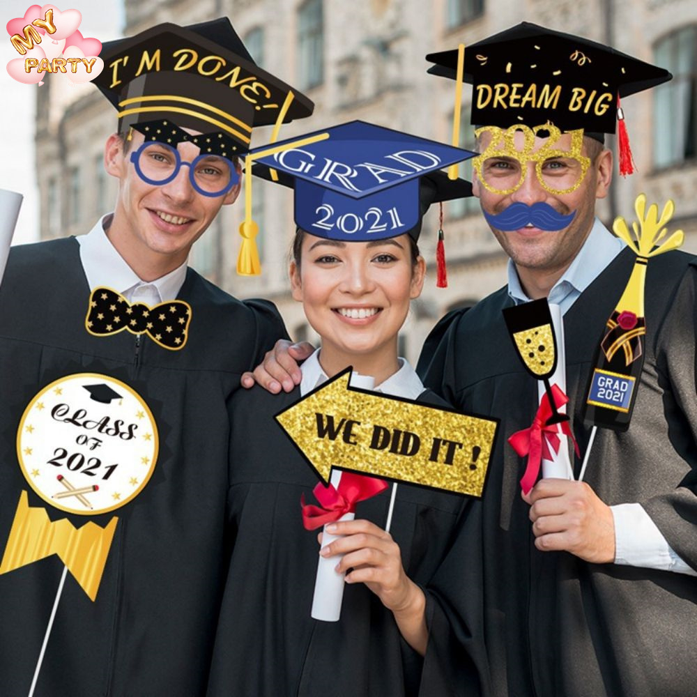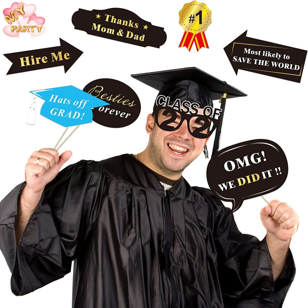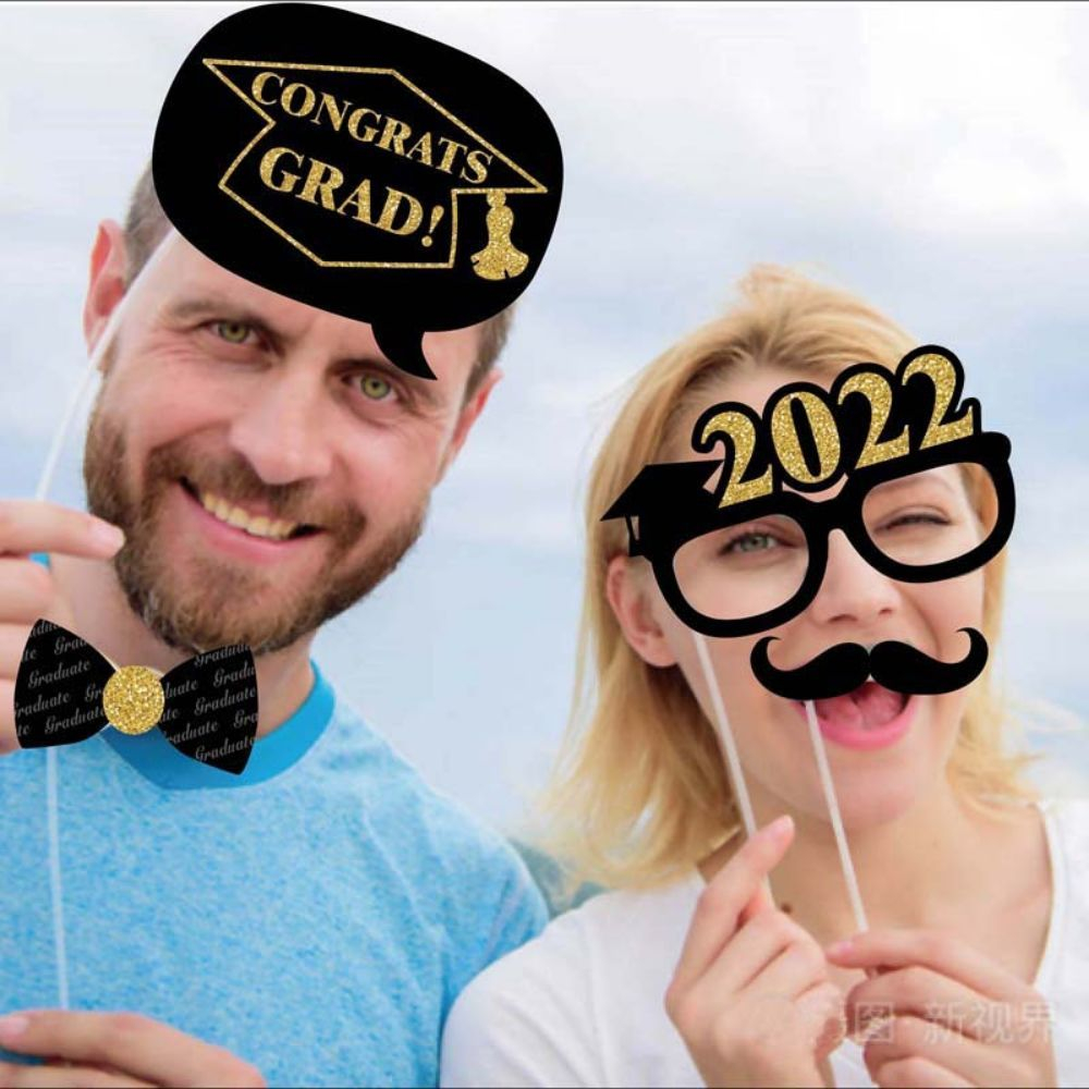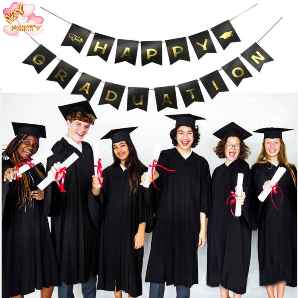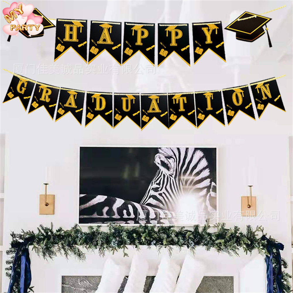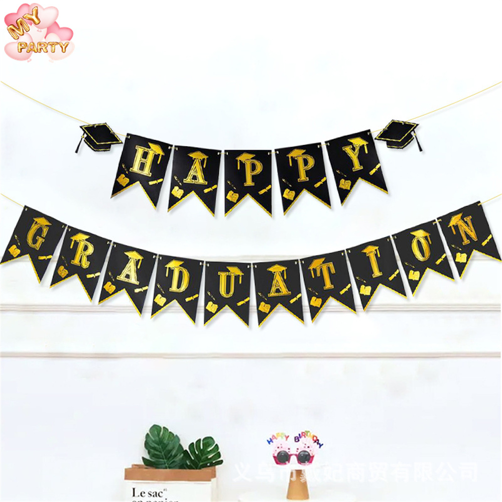 Happy Graduation Bunting 毕业快乐拉旗 Black+Gold Triangle Flag Glitter 无纺布毕业典礼装饰品 Party Banner Graduate
