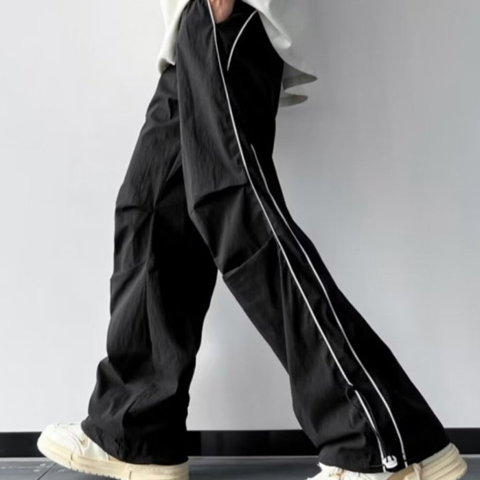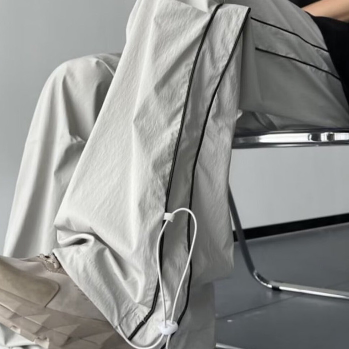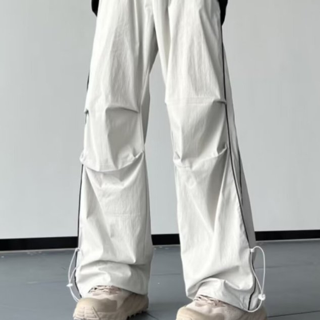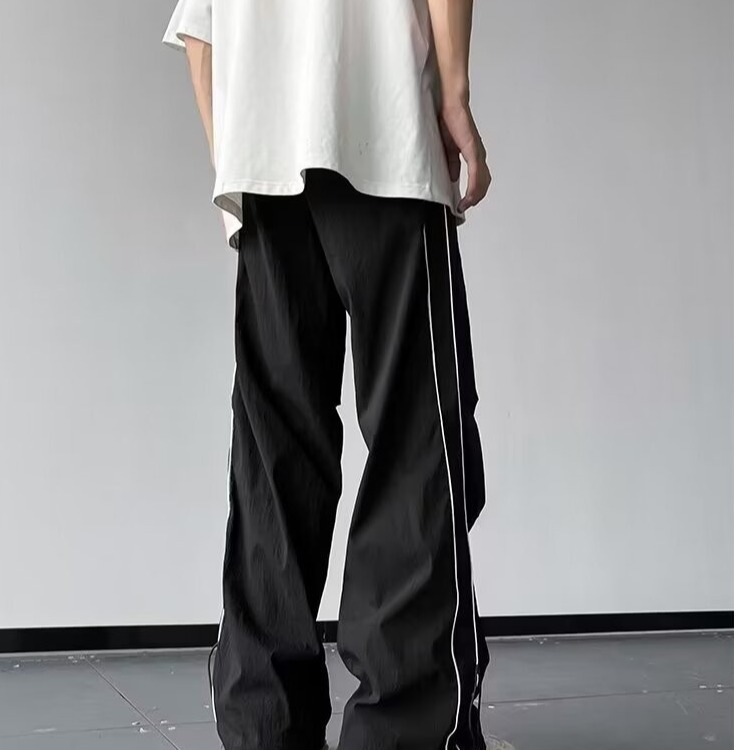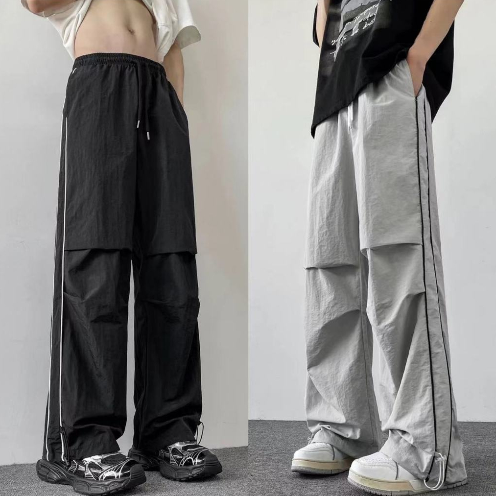 Hattongutto COD Straight length pants, medium waist, slouchy, handsome, fashionable and fashionable casual pants, Hong Kong fashion, summer, colorpure , youth and fashion
