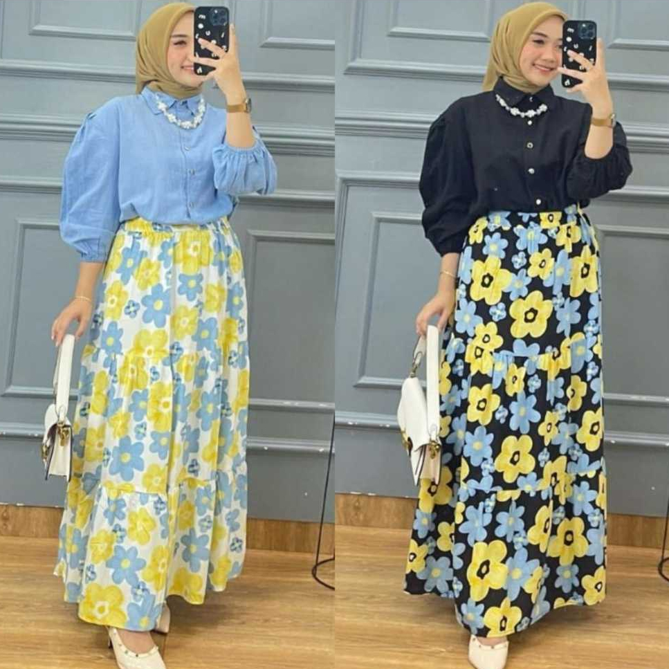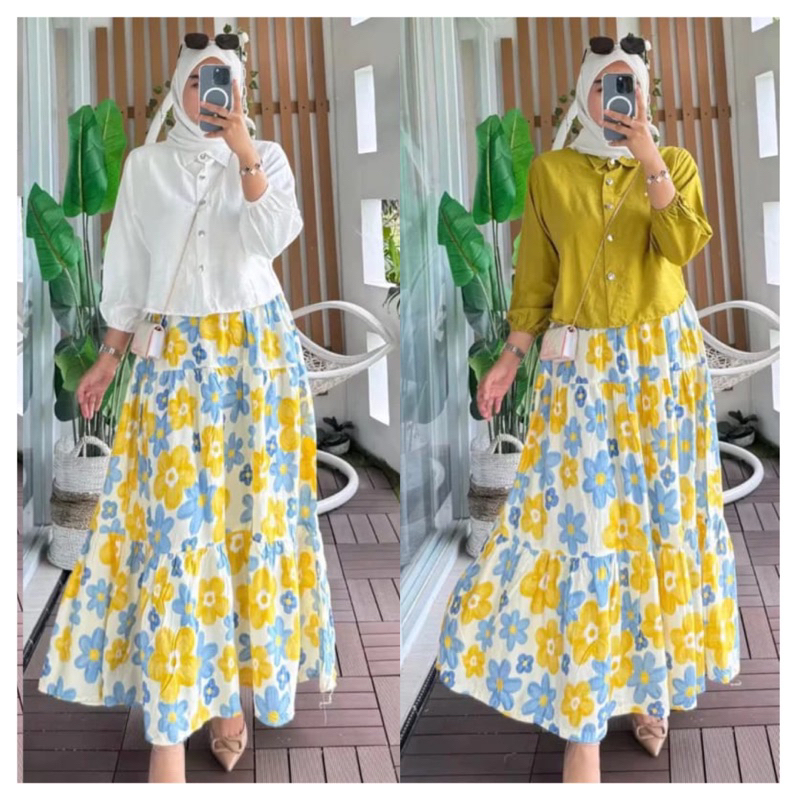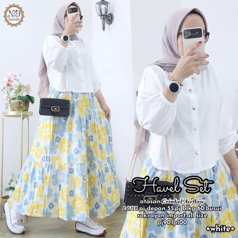HAVEL FLOWER SKIRT SET CRINKLE AIRFLOW MIX RAYON LD 110 // HAVEL SKIRT SET // HAVEL SKIRT SET // MODERN SKIRT SET