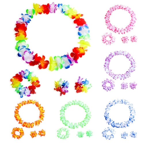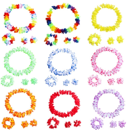 Hawaiian Leis Necklace Tropical Luau Flower Wreath Party Xmas 4 Piece Set HOT