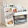 HBlife Desk Organizer with Pen Pencil Holder for Desk, Pen Organizer with 2 Drawers, Desk Organizers and Accessories with 4 Compartments, Desktop Storage for Office Home School Art Supplies, White