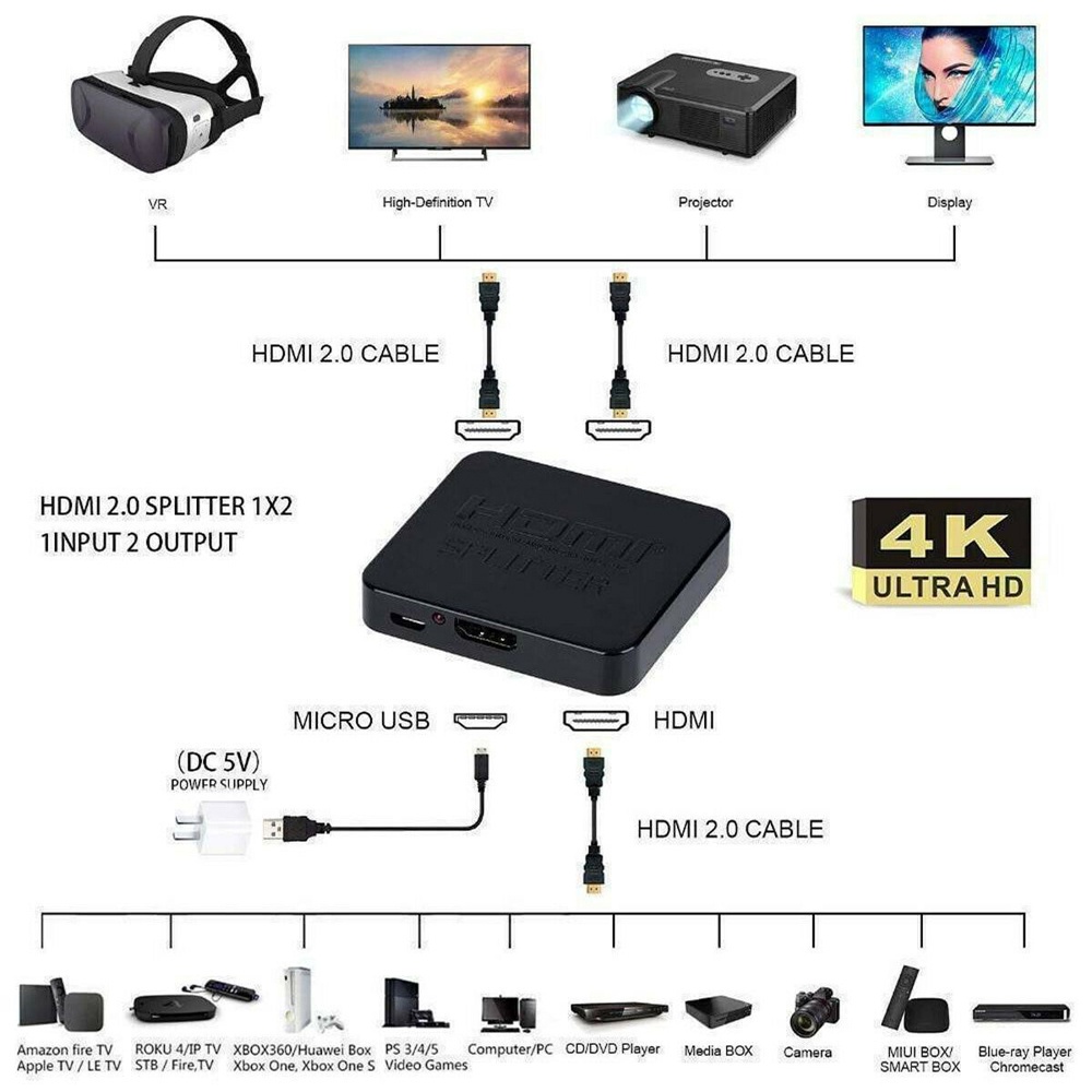 HDCP 4K Splitter Full HD 1080p Video Switch Switcher 1X2 Split 1 in 2 Out Amplifier Dual Display For HDTV DVD