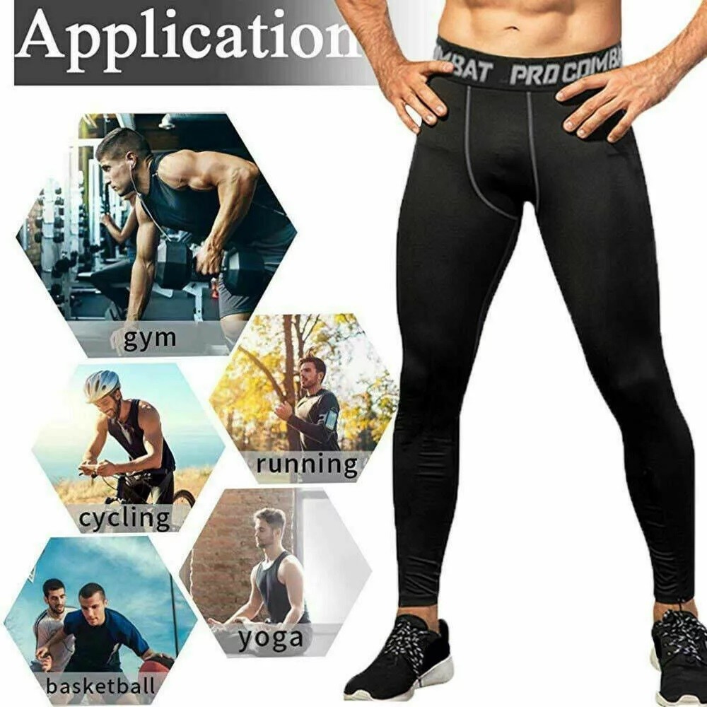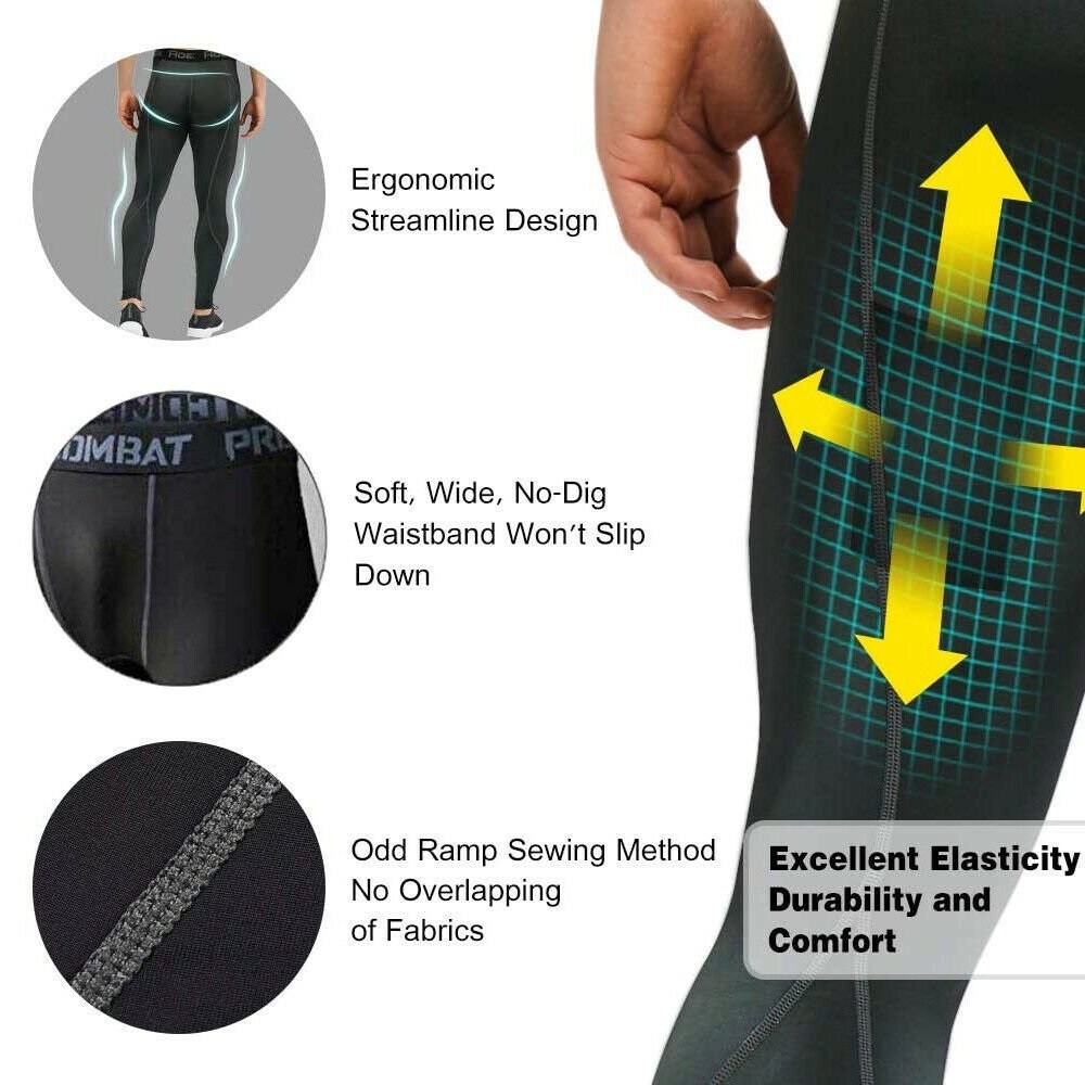 HealthGuru Men Gym Tights Pants Men Gym Pants Outdoor Jogger Exercise Seluar Fit Pants (Black / Silver)