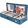Hearth & Harbor Wrapping Paper Storage Container - Christmas Storage Bag with Interior Pockets - Gift Wrap Organizer Fits Up to 22 Rolls of 40" - Tear Proof, Blue