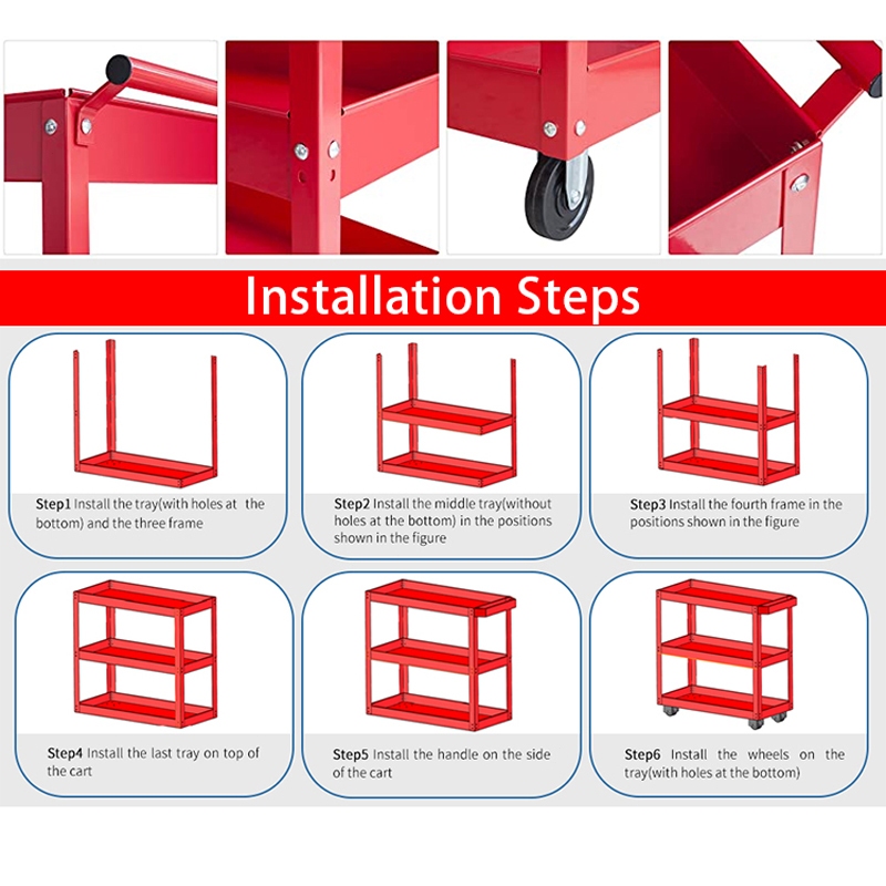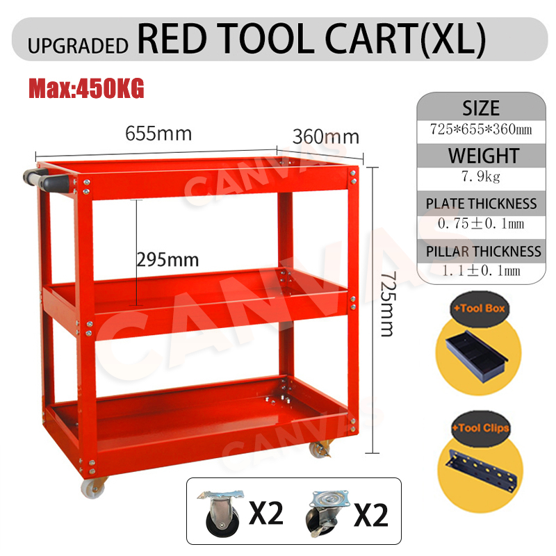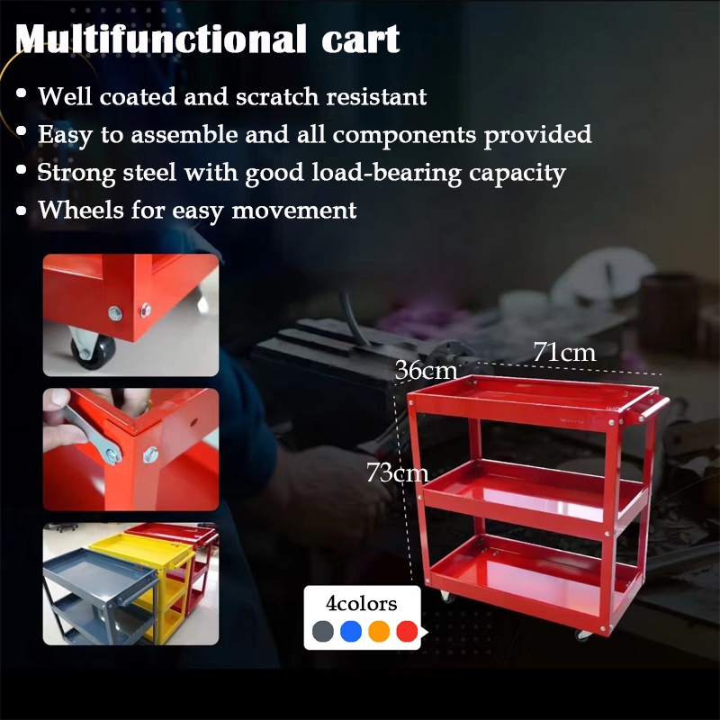 Heavy Duty Tool Trolley 3 Layers Service Cart Metal Steel Troli Barang Garaj Bengkel Tools Shelf Storage Toolcart 工具车