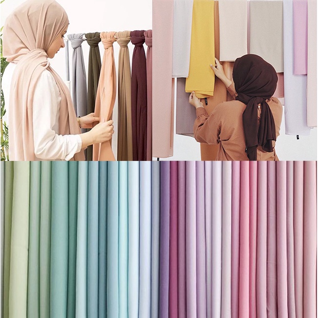 Heavy shawl chiffon borong murah plain tudung shawl keknis chiffon head scarf hijab 175x70cm-erynna