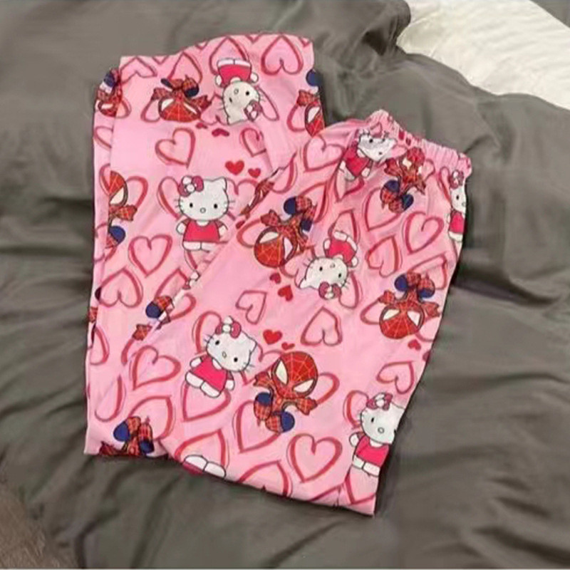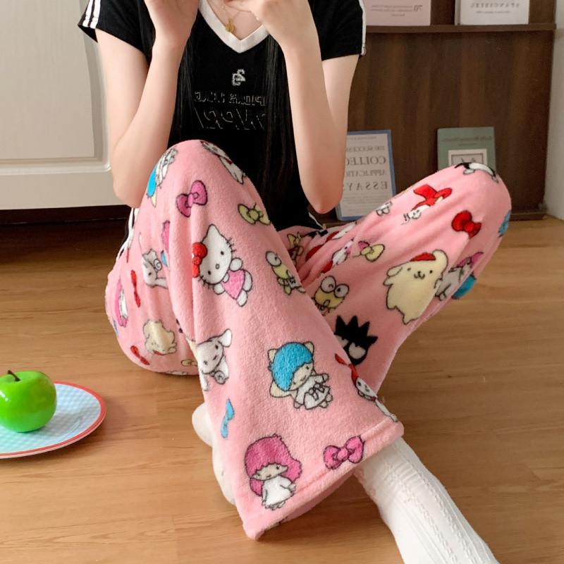 Hello Kitty Pajama Pants Kawaii Kt Cat Women Warm Casual Pants Autumn Winter Soft Plush Trousers Coral Velvet Britches Girls Pants