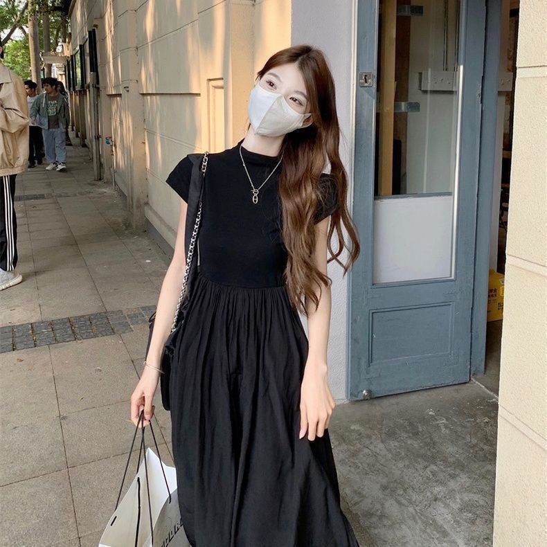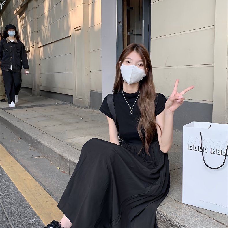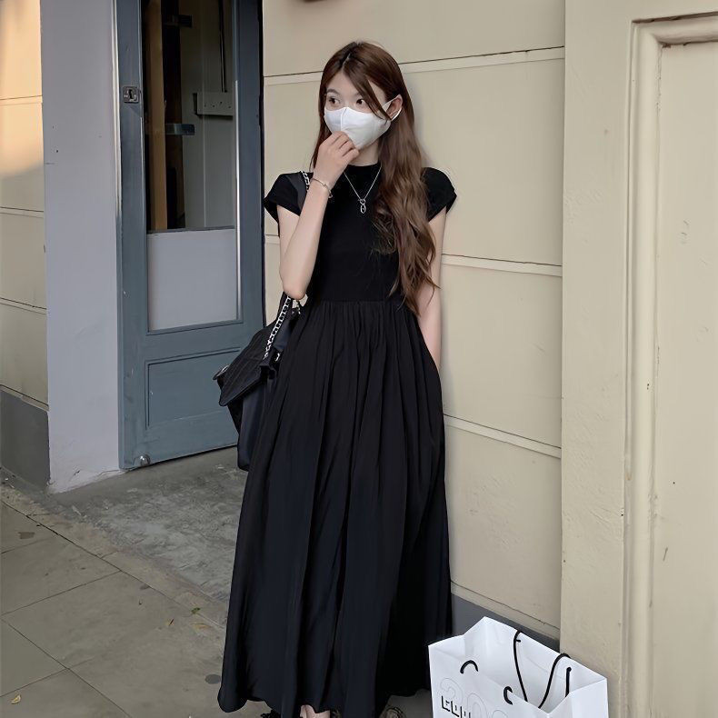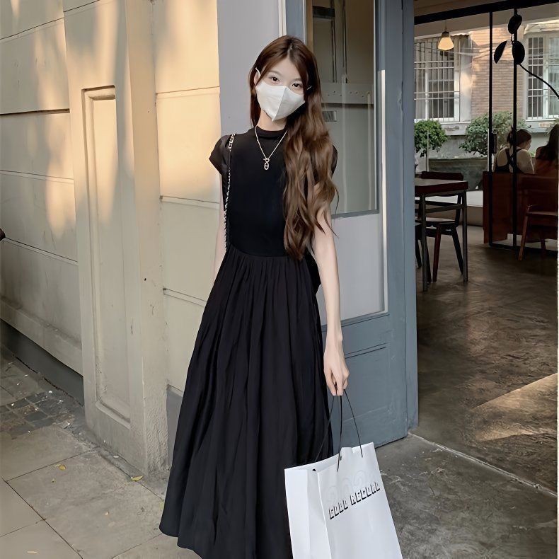 Hepburn Style Black Short-Sleeved Dress Women Summer New Style