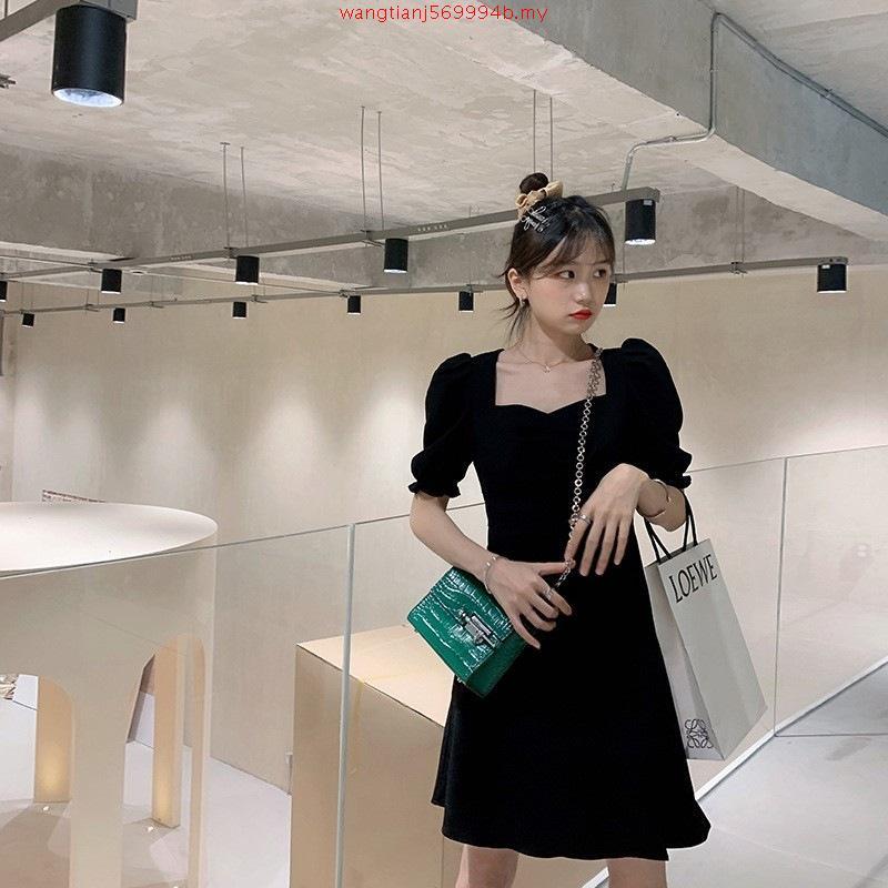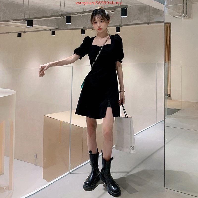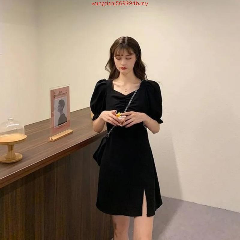Hepburn Style V-neck Short Sleeve Dress Women Solid Color All-match Spilt Short/Long Dress
