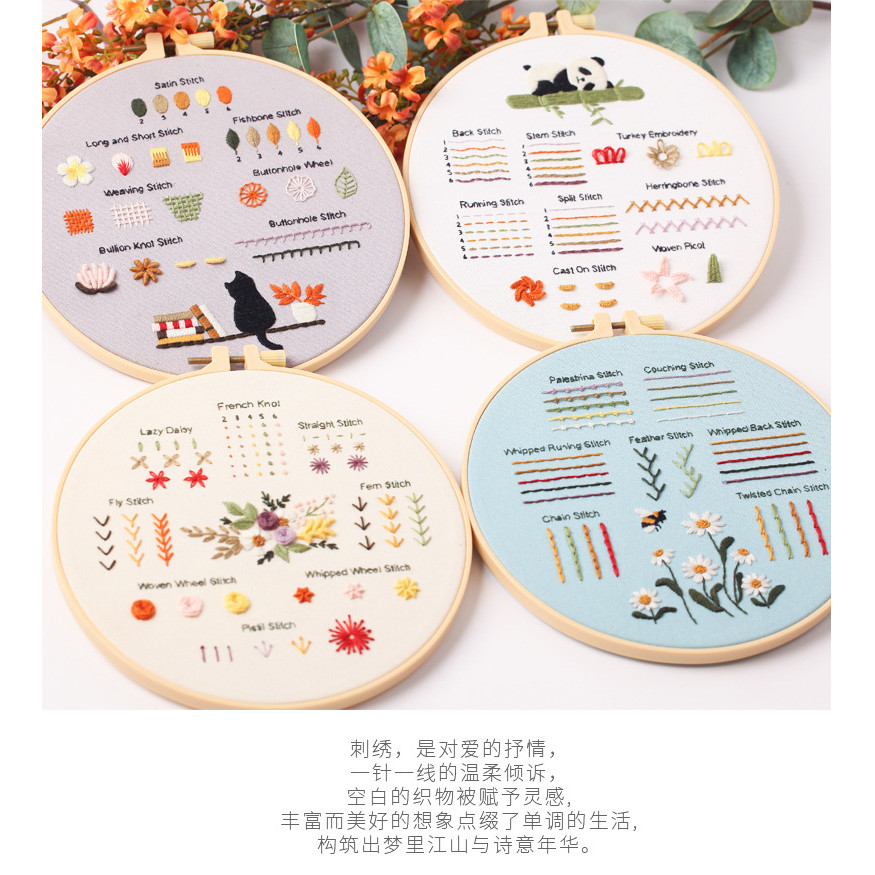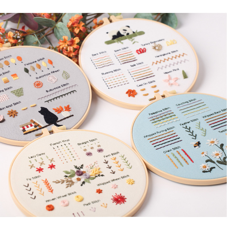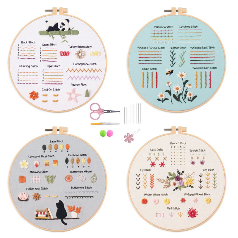 [HEPU] 4 Sets Embroidery Stitches Practice Kit, Embroidery Kit for Beginners with Embroidery Patterns, Beginner Embroidery Kit, Embroidery Kits for Adults, Hand