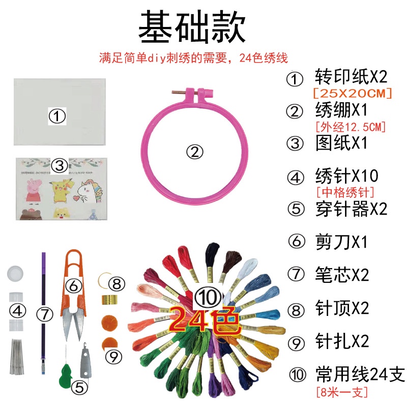[HEPU] Embroidery diy Material Bag Set Cross Stitch Thread Embroidery Thread Handmade Beginner Clothes Pattern Cotton Thread