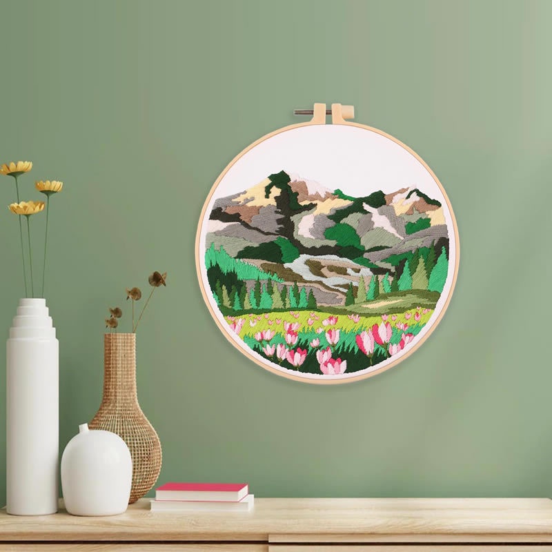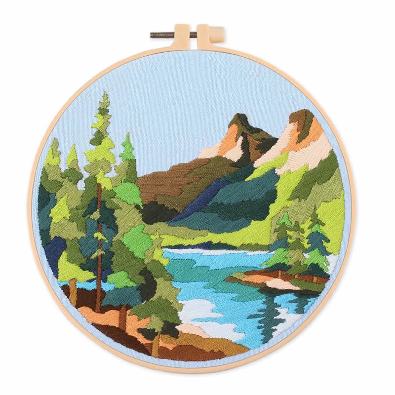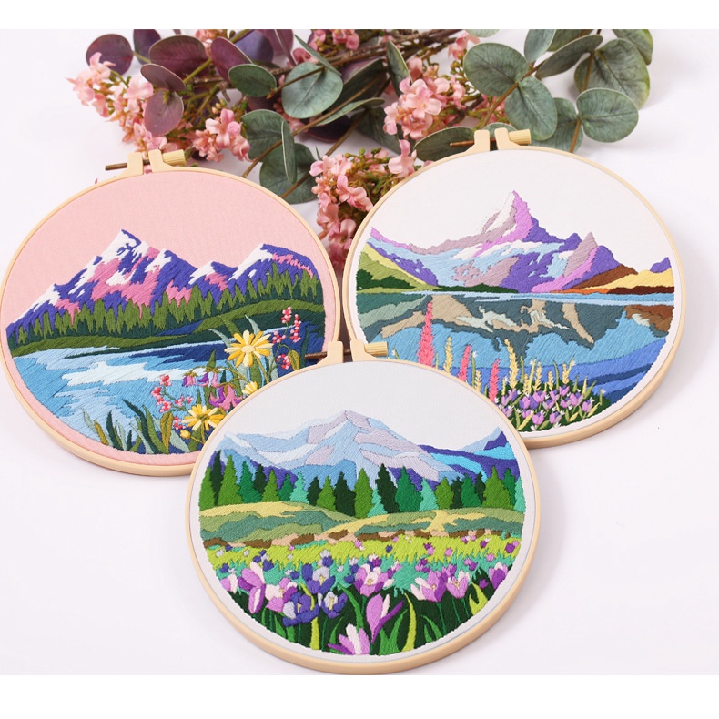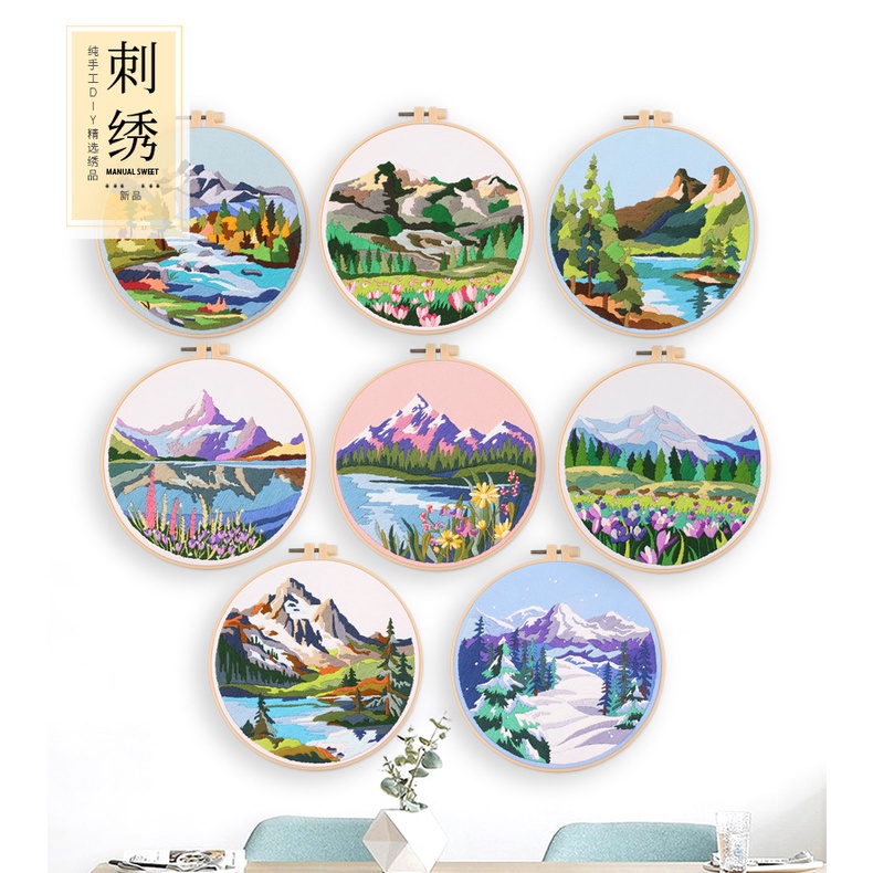 [HEPU] Embroidery material kit, cross stitch kit, mountain and woods pattern, simple embroidery suitable for beginners adults, women handcraft, decoration