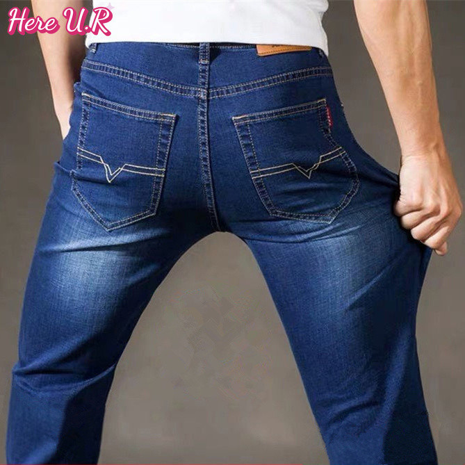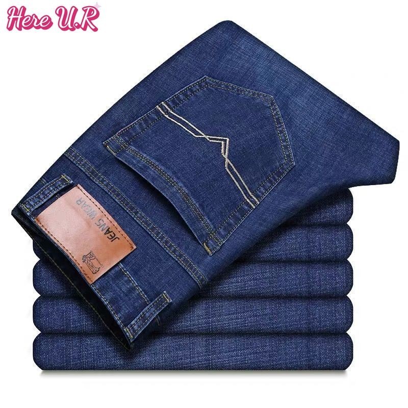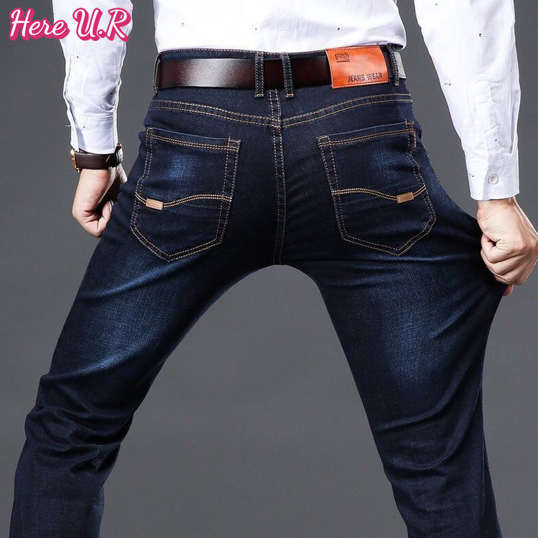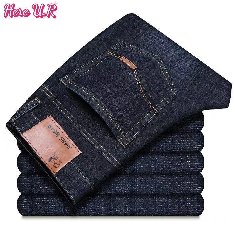 Here U.R Men's Business Jeans Plus Size Stretch Straight Jeans Slim Denim Trousers