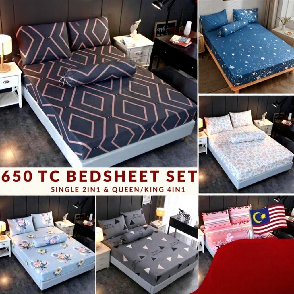 High Quality Classic Series Bedsheet Set – 4in1 Queen/King | 2in1 Single | Fitted Cadar with Pillow & Bolster Case