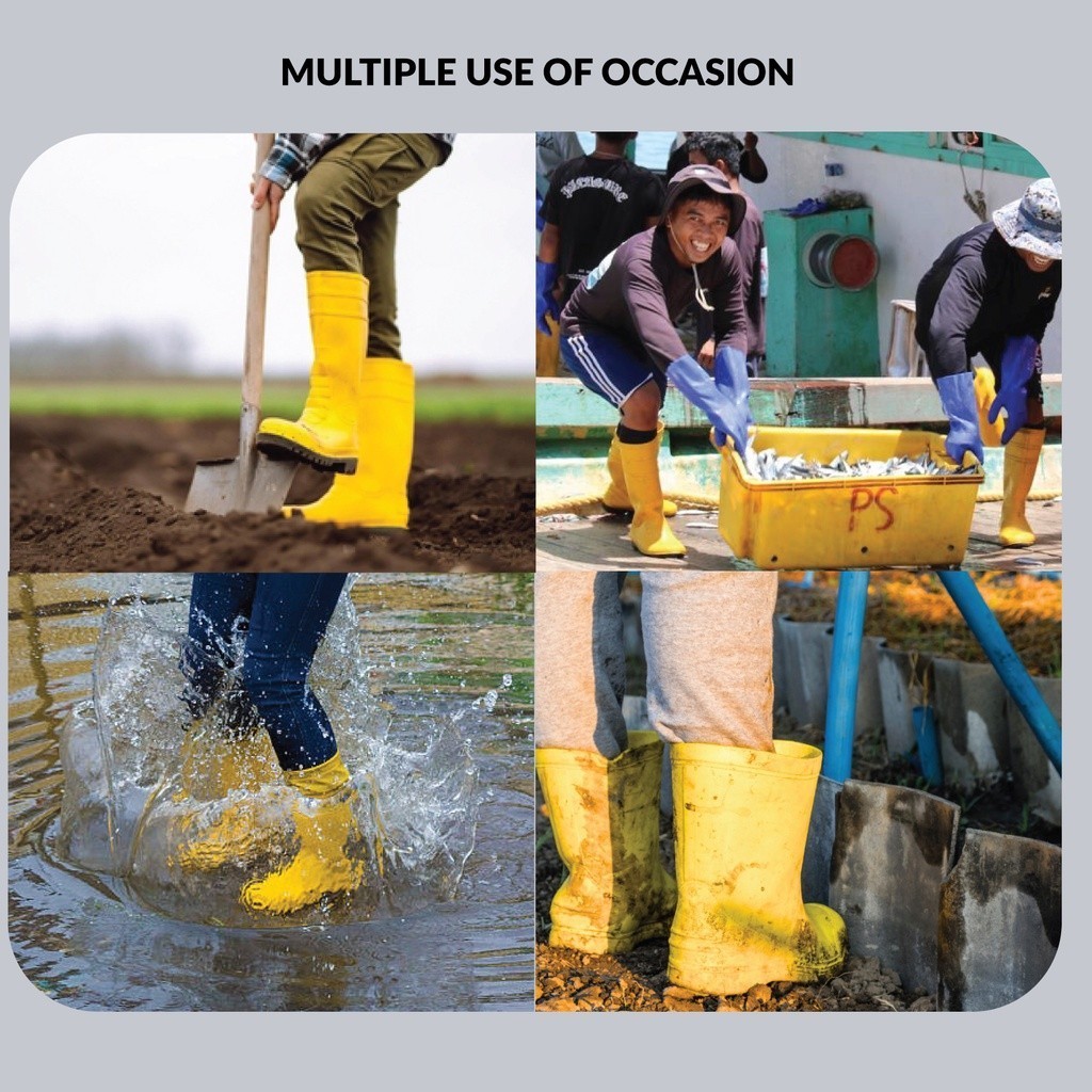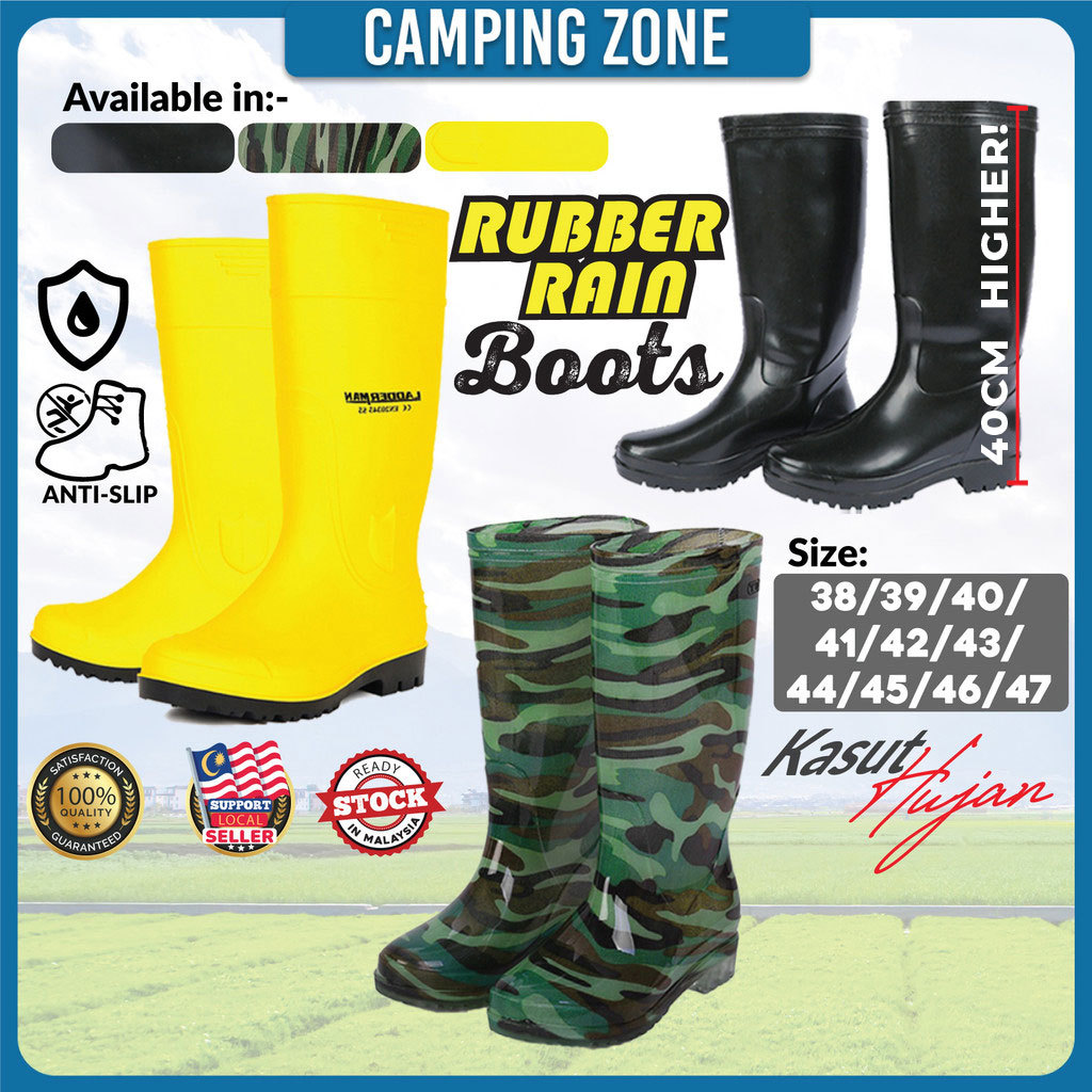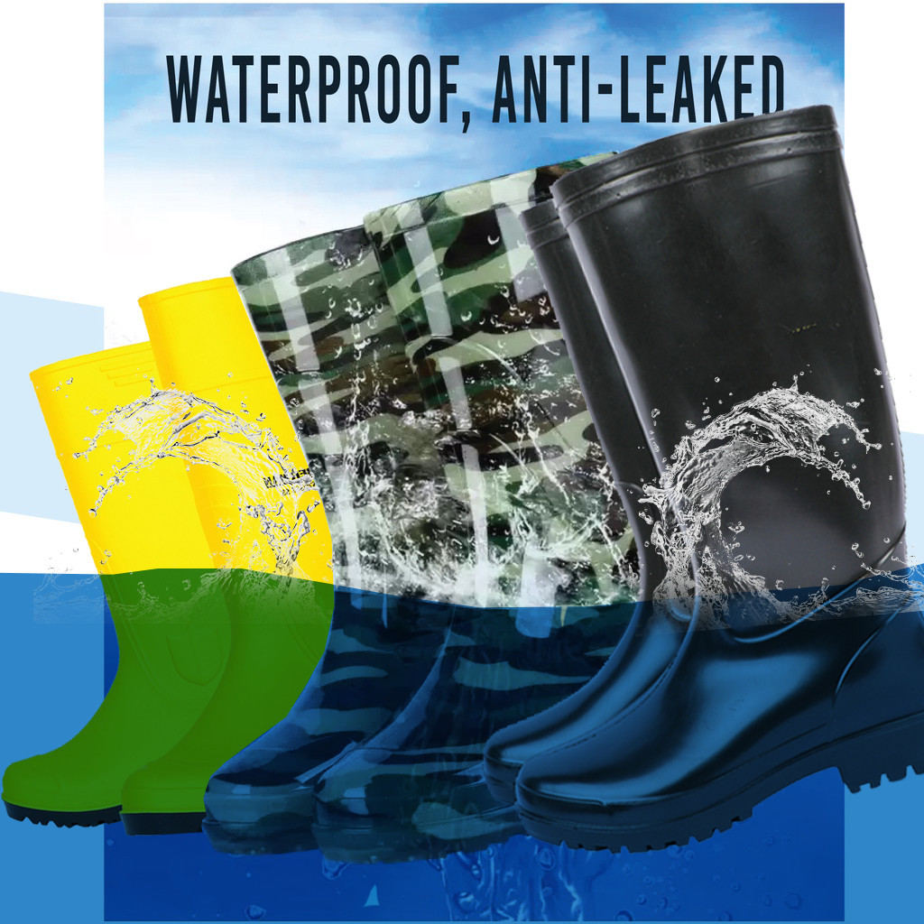 High Quality PVC Long Rubber Rain Boots Anti Slip Kasut Boot Getah Pasar Kebun Kuning Hitam Hijau Kasut Hujan Banjir