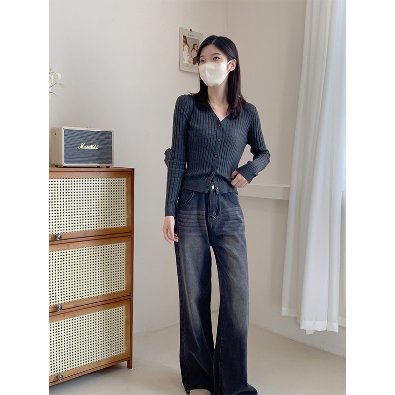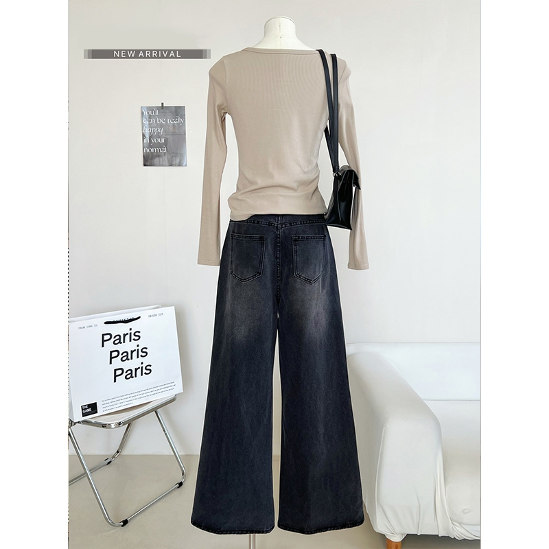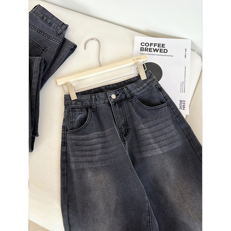 High Street Wide Leg Jeans Hip Hop Loose Pants Black and grey straight high waist pants