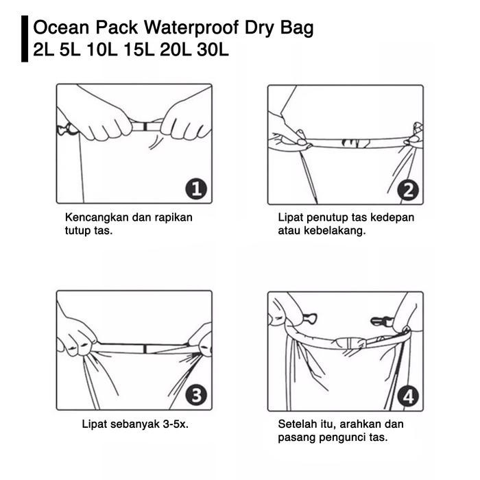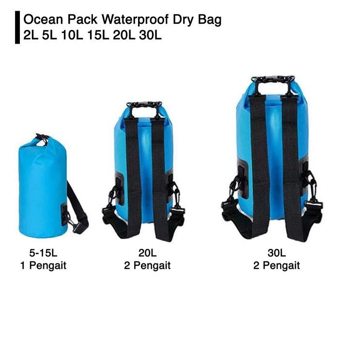 HIJAU MERAH OCEAN PACK Dry Waterproof Outdoor Bag Waterproof Travel Backpack Fishing Swimming Beach Multi Color Gray, Lightbiru, Darkbiru, Green, Black, Yellow, Red, Pink and Orange. Size 2L 5L 10L 15