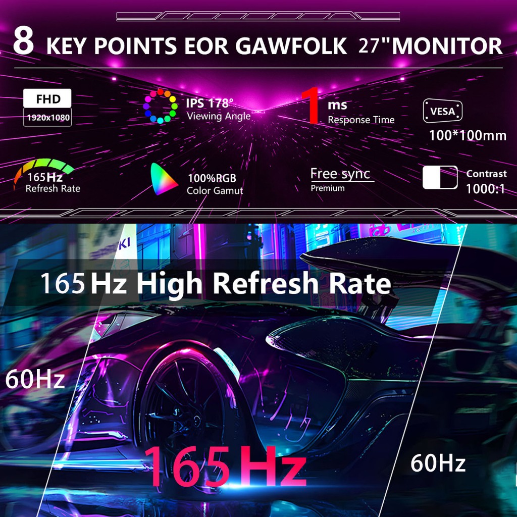 Hoesd.a 24inch/27 inch 100Hz/165Hz/180Hz Gaming Monitor DP/HDMI 350cd/m2 Gaming Display Computer Laptop Monitor