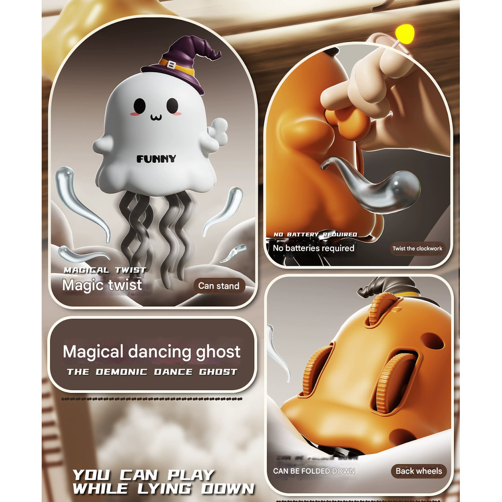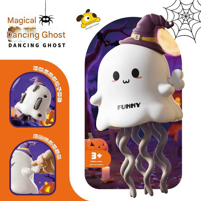 Hollywood Halloween Mischievous Little Ghost Toys - 2 Styles (White & Orange) with Witch Hats, Funny Spooky Decor & Play Items for Kids BT603