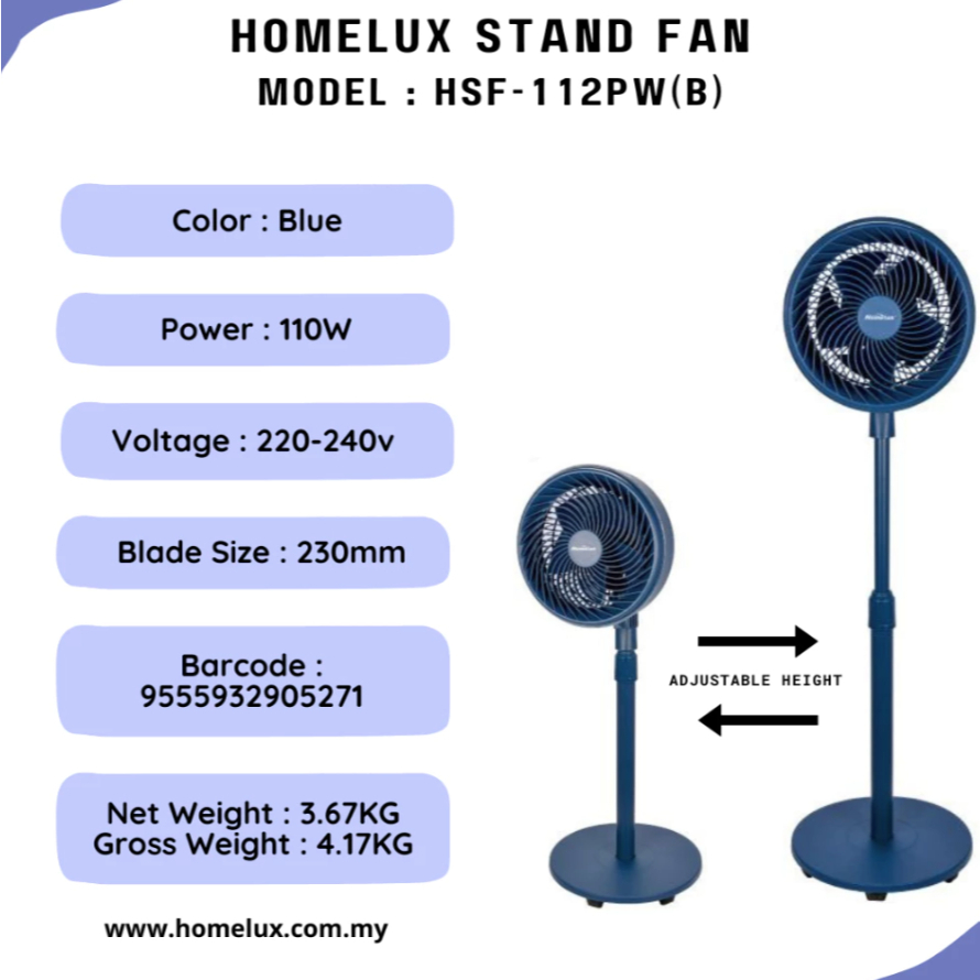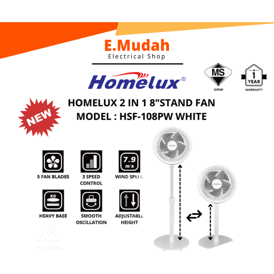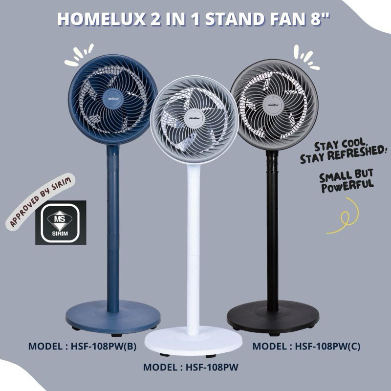 Homelux 2 in 1 Stand Fan/Table Fan/Living Fan/Kipas Stand/Kipas Meja | 90W Powerful Motor | HSF108PW/HTF208PW/HSF112PW