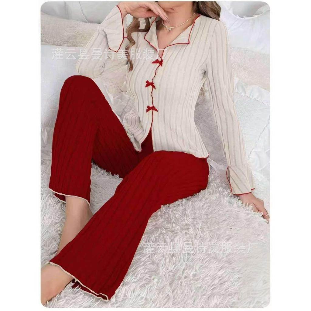 Homewear Lapel Pajamas Comfort and Warmth Bow Tie Plush Warm Enhancement of Charm Entertainment