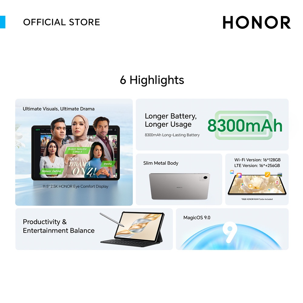 HONOR Pad X9a Tablet 16(8+8)GB+128GB 11.5" 120Hz 2.5K Display 8300mAh 35W Fast Charging Snapdragon® 685