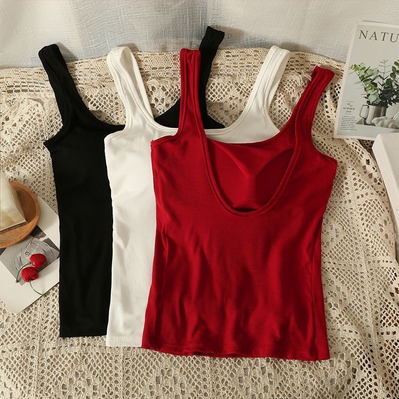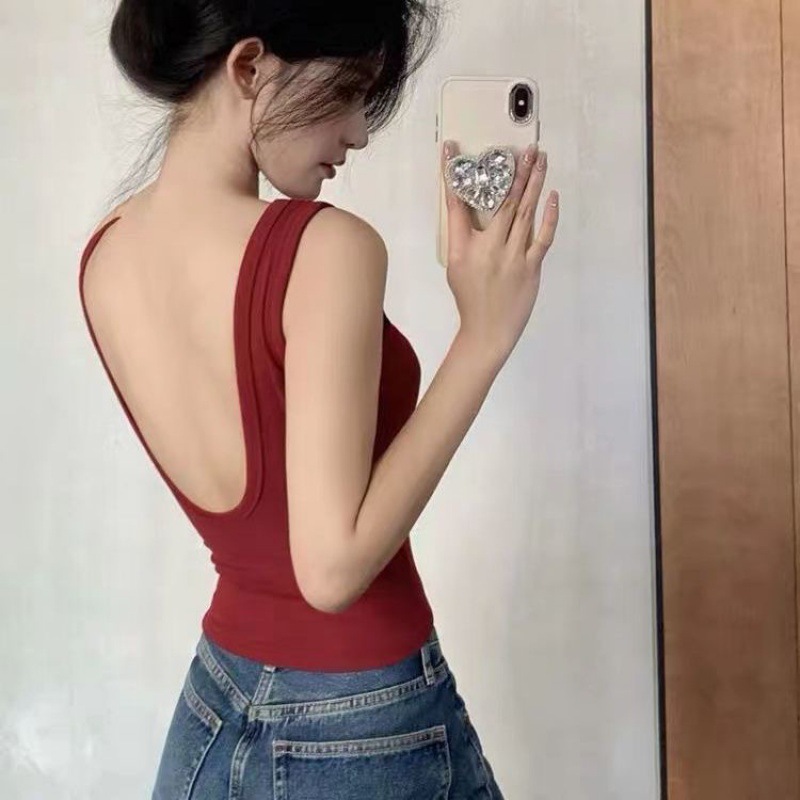 Hot Girl U-shaped Backless Tank Top with Breast Pads, Camisole Slim Underwear or Wear As a Tube Top