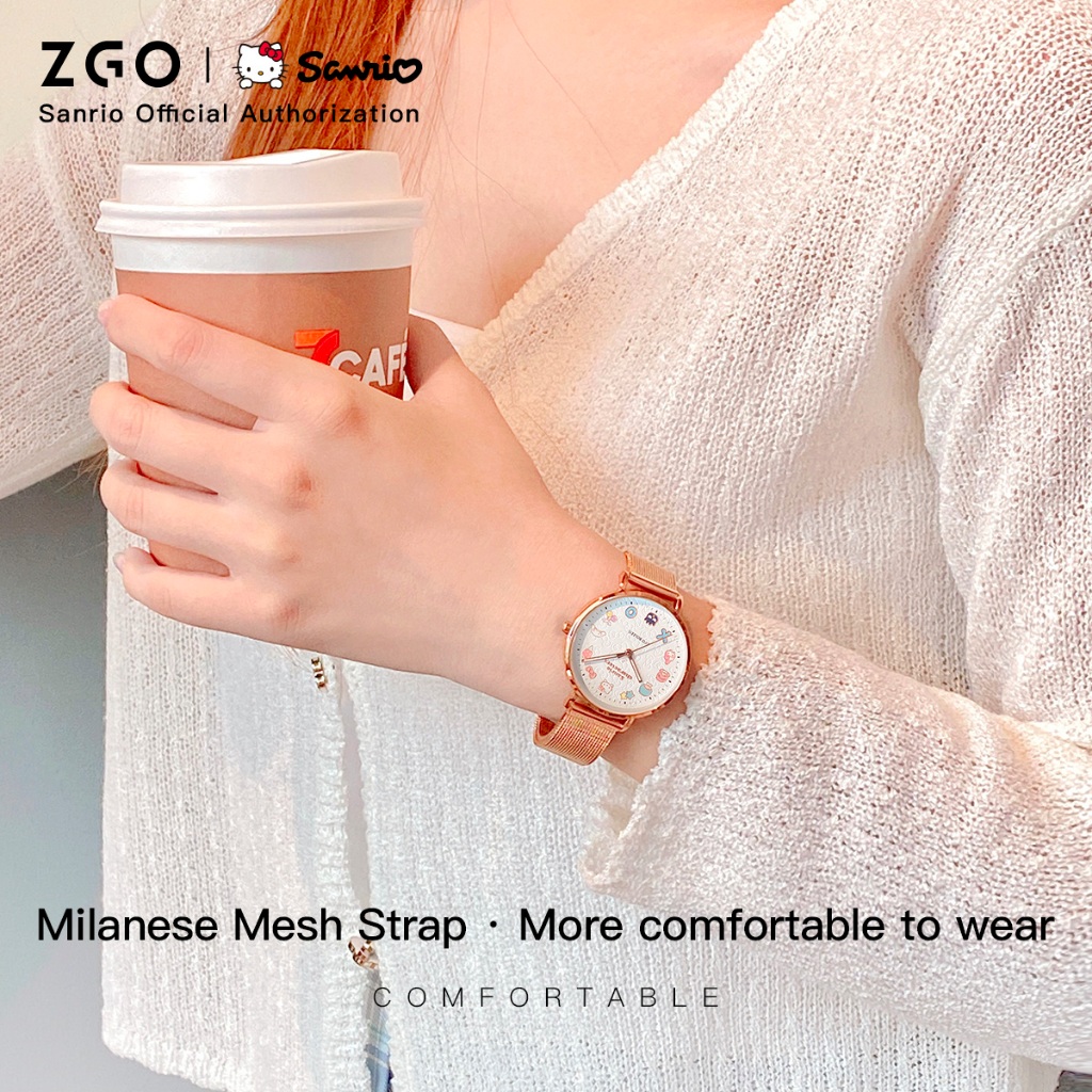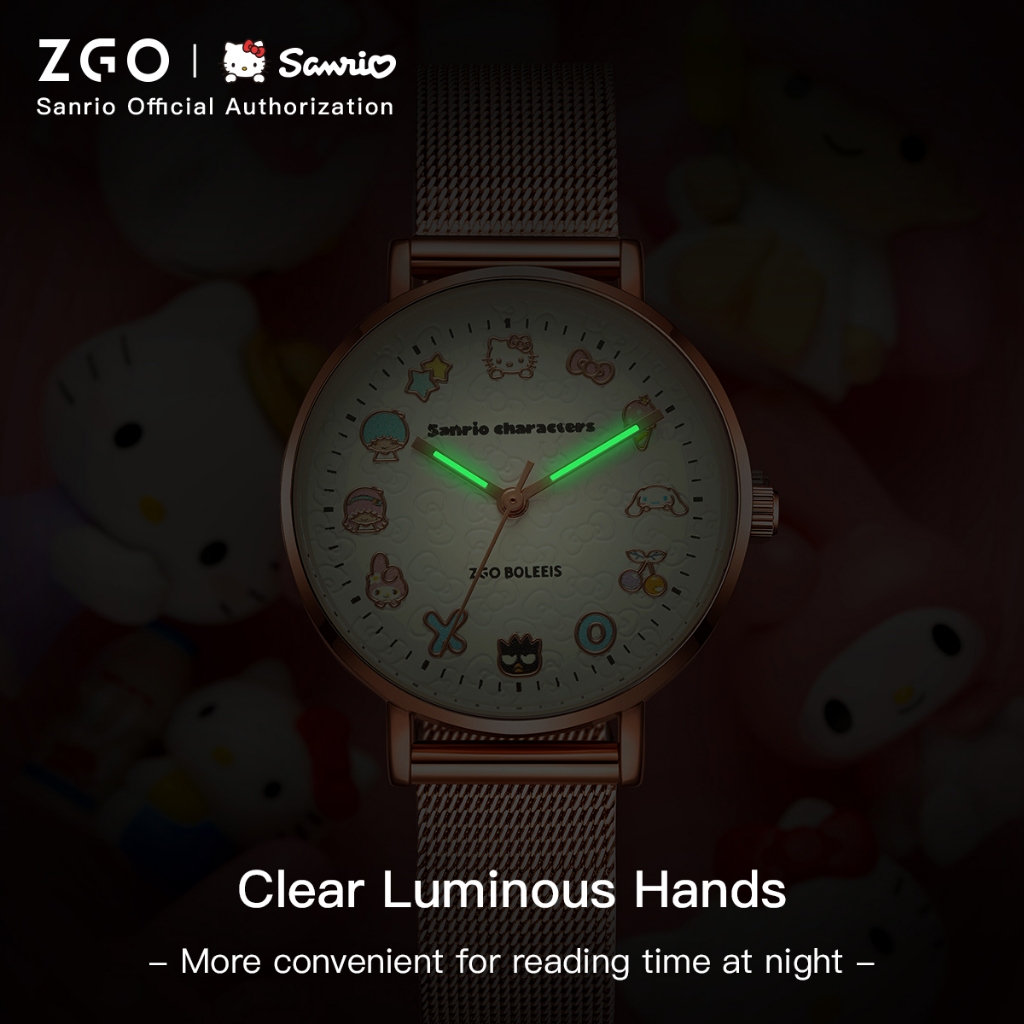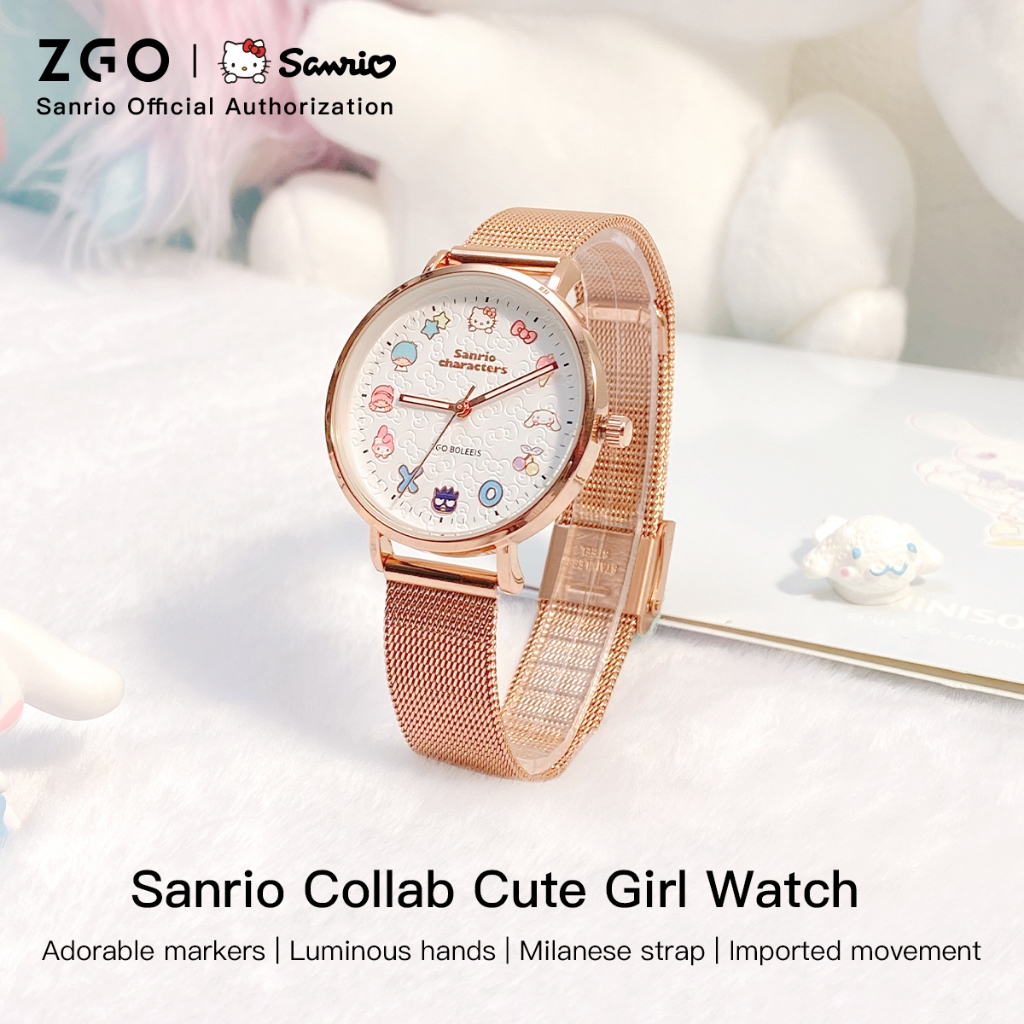 【Hot items】ZGO x Sanrio jam tangan perempuan Exquisite Waterproof Light Luxury Steel Band Watch For Female Student Gift 2081