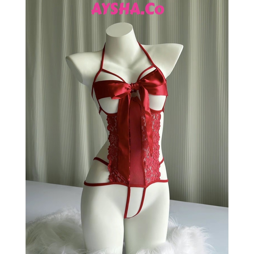 Hot Ribbon Bodysuit Lace Nightdress Pajamas/Baju Tidur Malam Seksi/Lingerie Sleepwear Nightwear Pyjamas