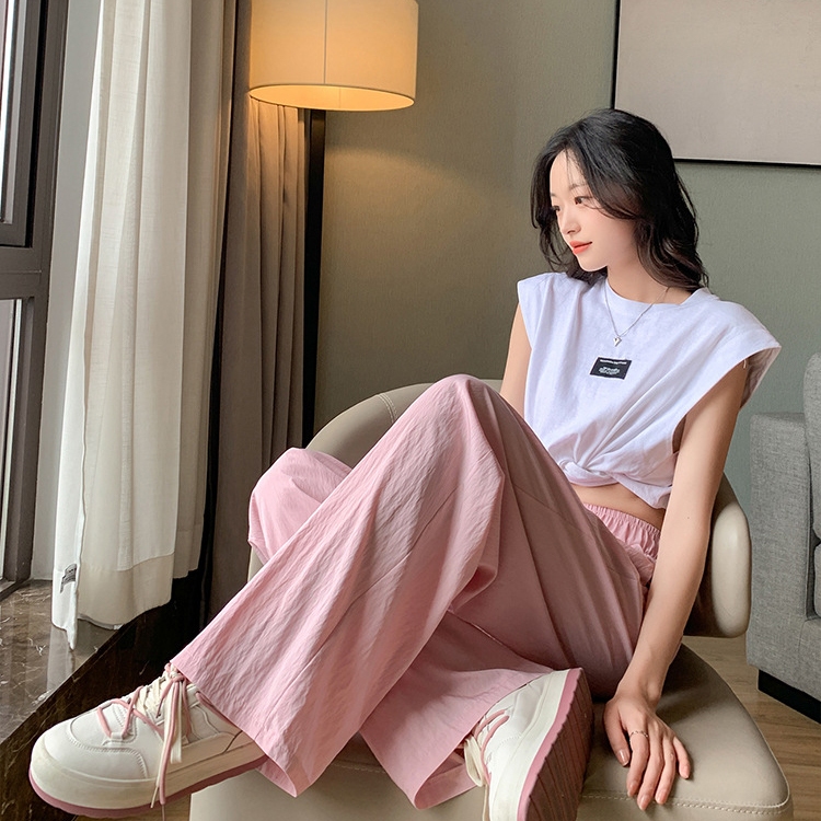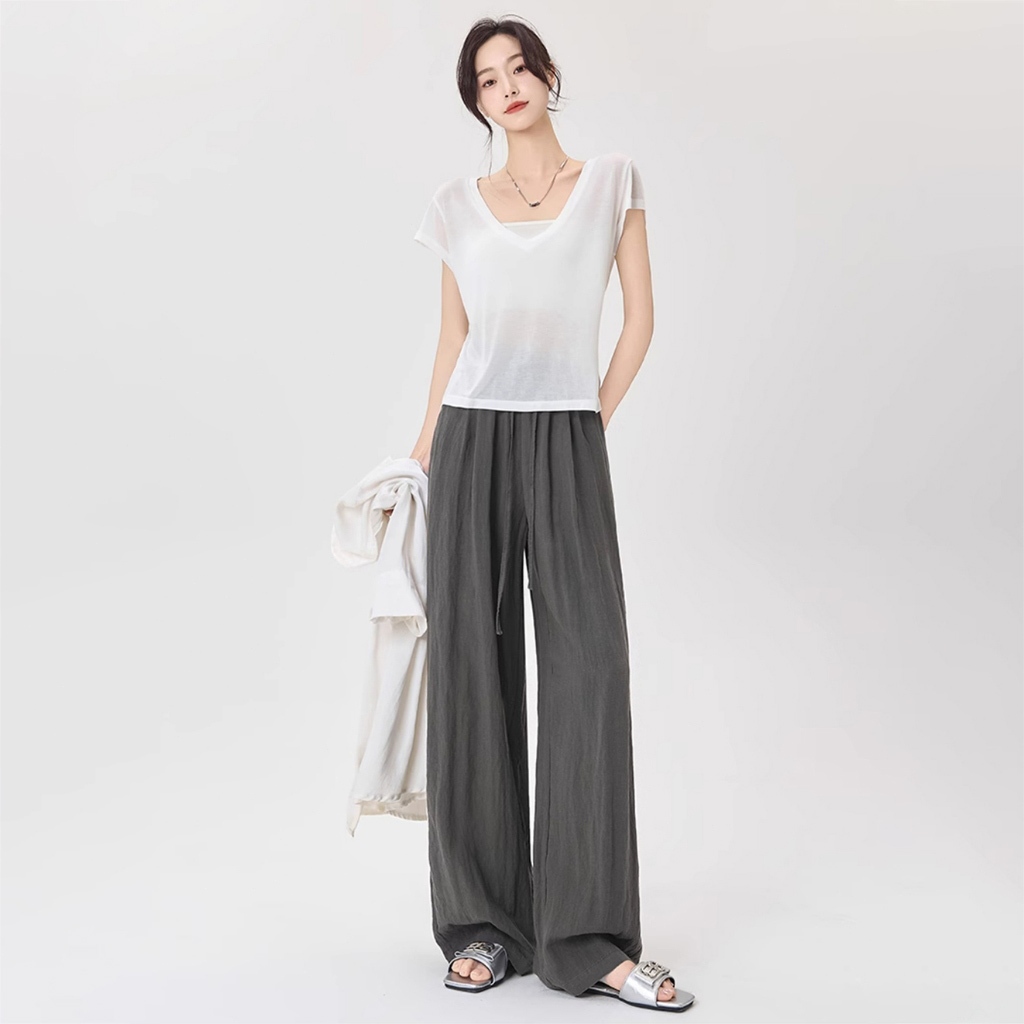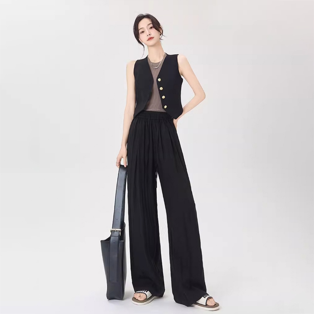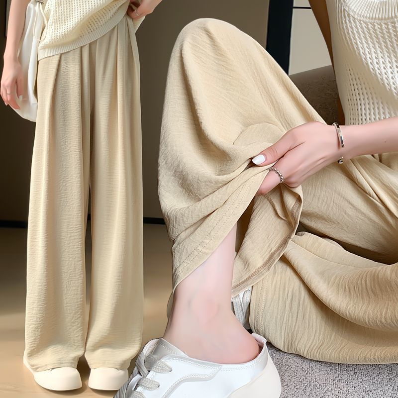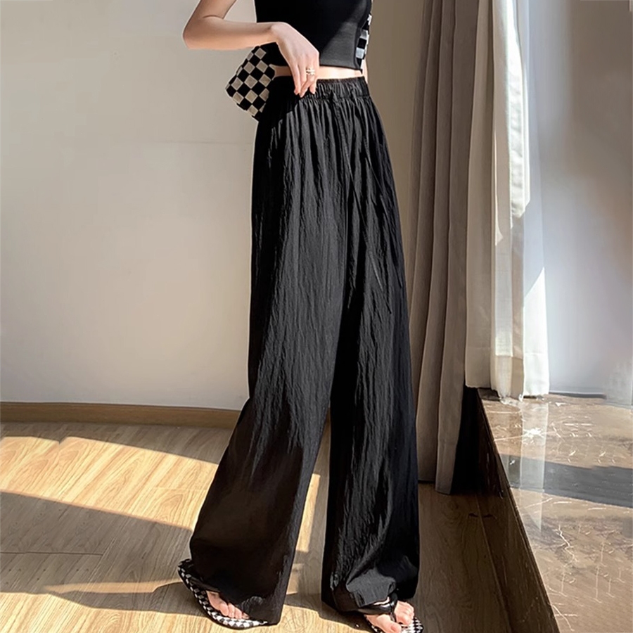 Hot Sales Ice Silk Fabric Wide Leg Pants Casual Pants Korean Style High Waist Straight Loose Pants