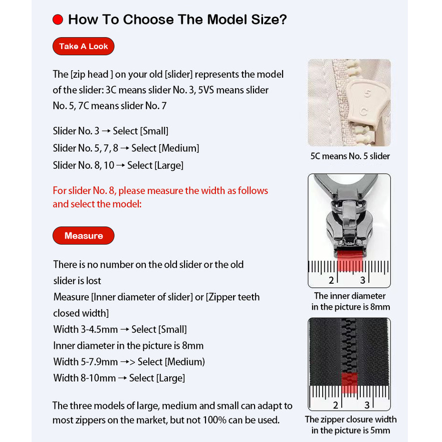 【Hot Sell】3 Sizes,Universal Zipper Repairer Detachable Zipper Head Lock Zipper Replacement