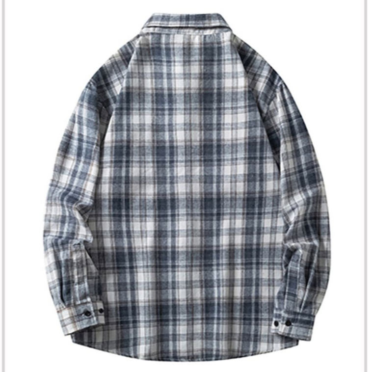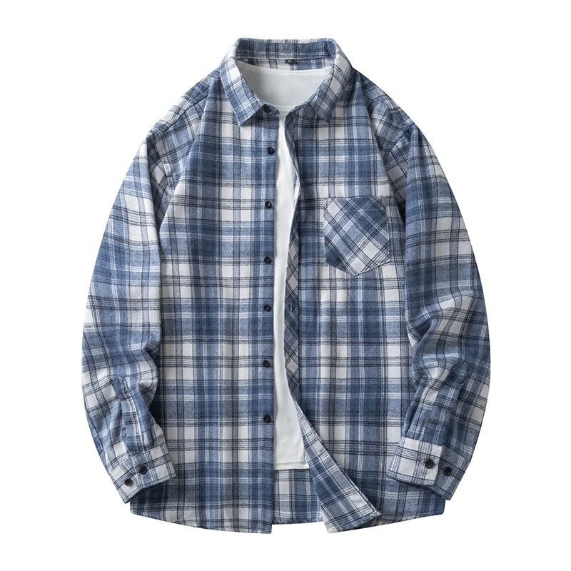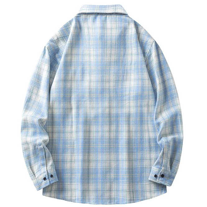 HOUCH COD Flannel Shirt with Blue Sky Check Pattern Long Sleeve Men's and Women's