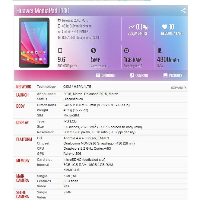 ( HUAWEI) GLOBAL ROM HONOR MEDIAPAD (T1 - A22L) T 4G Tablet PC Snapdragon MSM8916 64 Bit Quad Core
