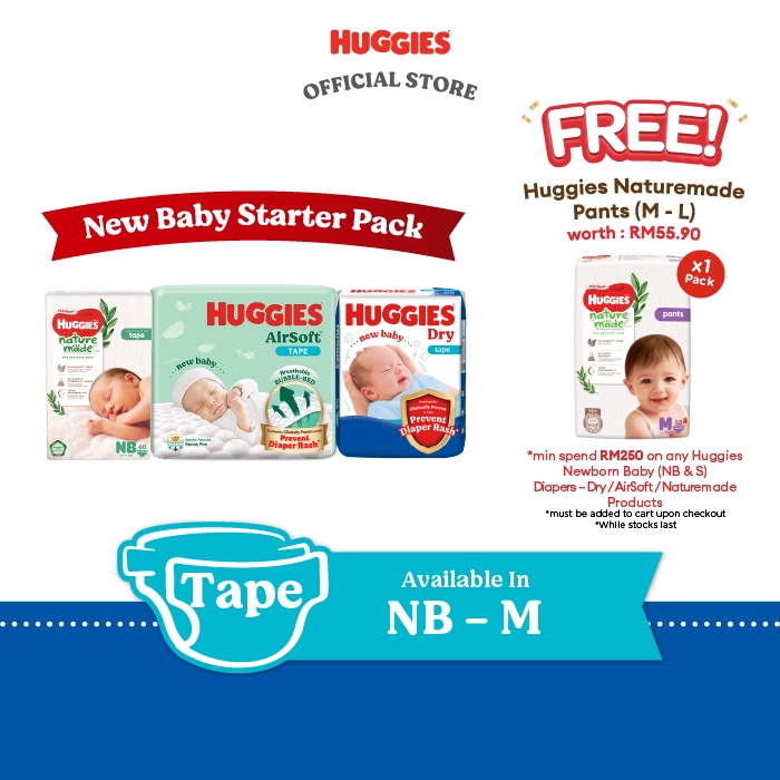 Huggies Newborn baby (NB / S) Diapers - Dry / AirSoft / Naturemade (1 pack)