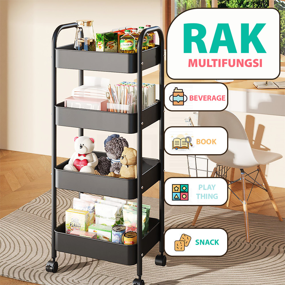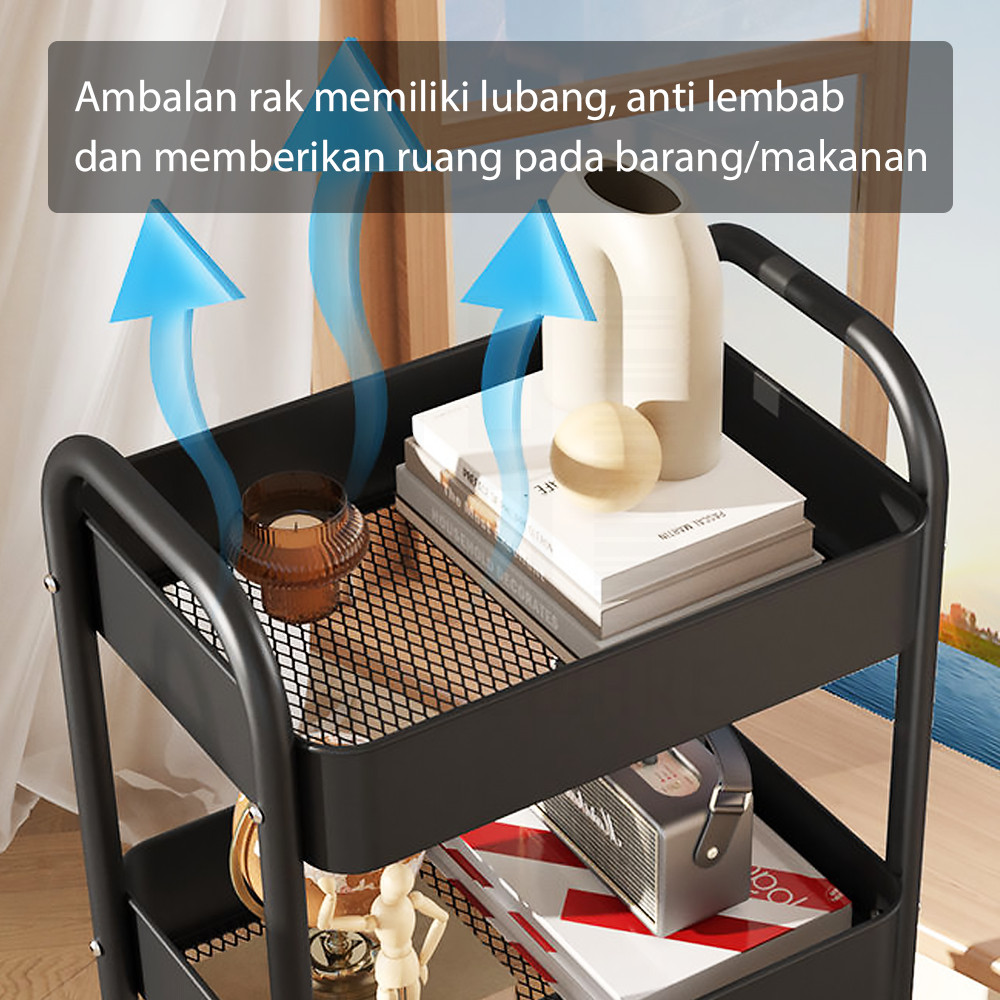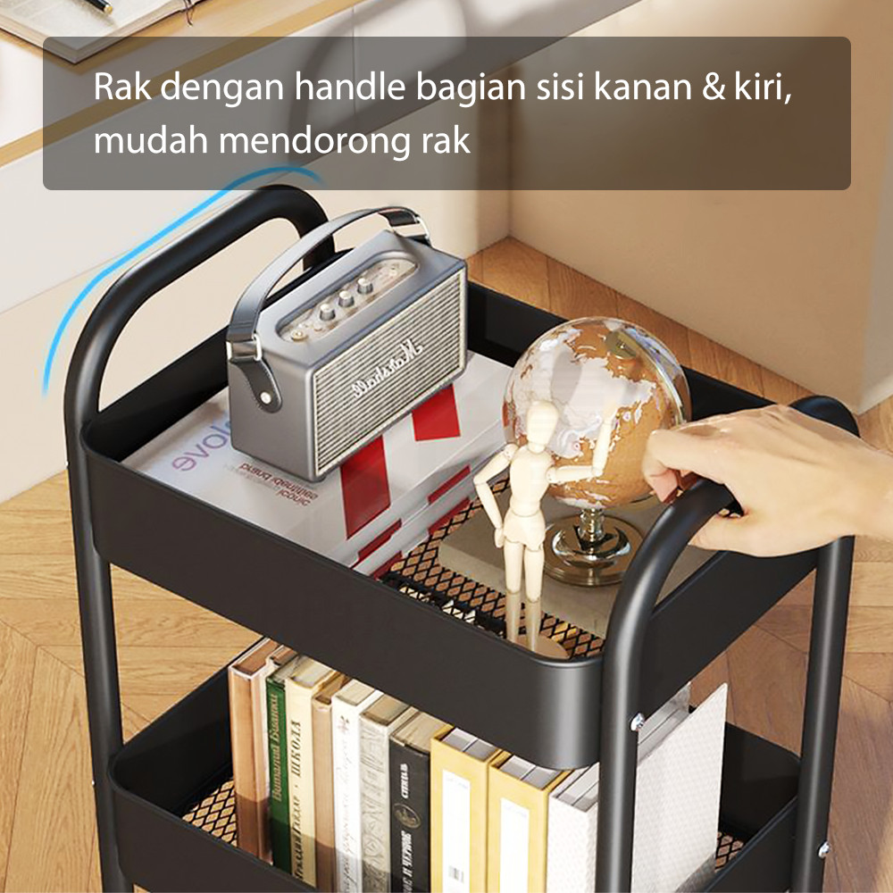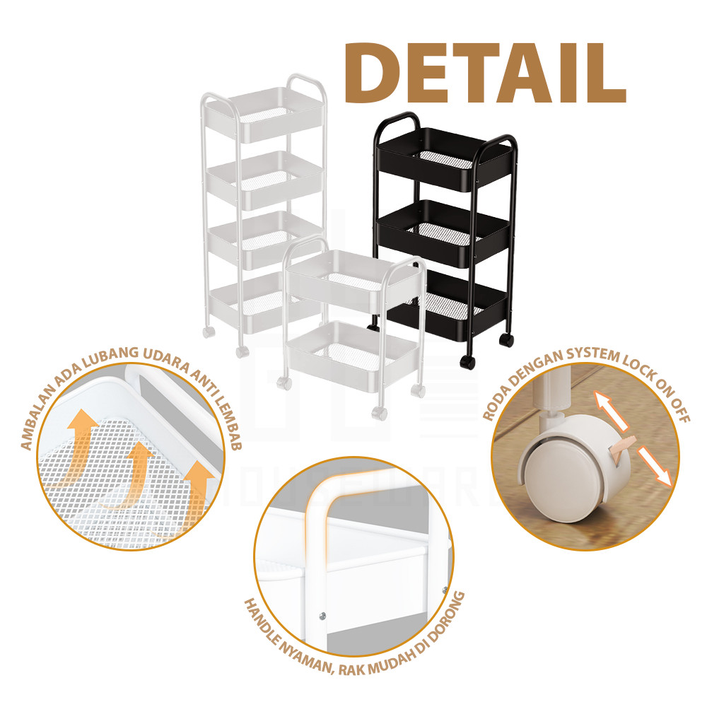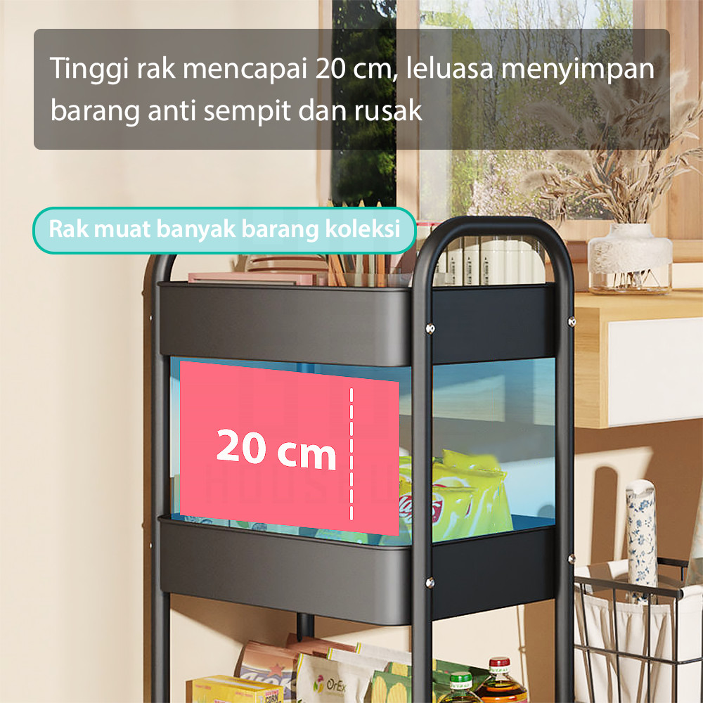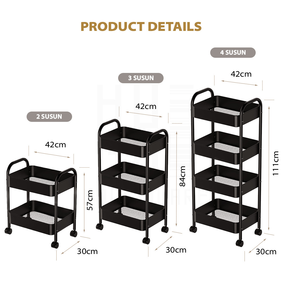 HUGO Multipurpose Iron Kitchen Shelf Multi-Tiered Iron Storage Shelf Bathroom Shelf Salon Shelf Stainless Steel Push Stacking Trolley Shelf with Wheels