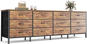 Huuger 70 Inch Dresser for Bedroom, TV Stand for 65, 75, 80 Inch TV, 12 Fabric Drawer Long Dresser, Large Entertainment Center for Bedroom, Wide Chest of Drawer with Storage, Rustic Brown