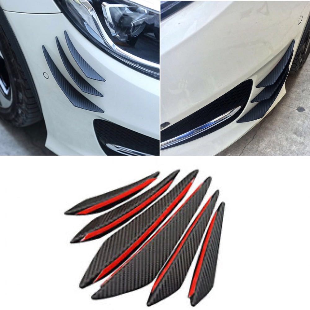 HW 6Pcs Carbon Fiber Style Car Universal Front Bumper Lip Splitter Body Spoiler Canards