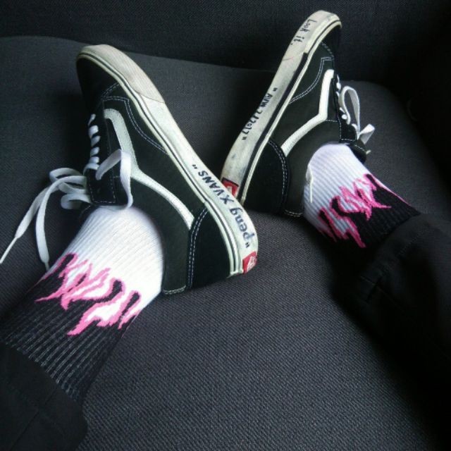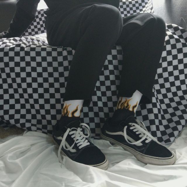 HypeVibes Unisex Flame Black White Yellow Fire Harajuku Socks Skateboard Socks Fashion Hipster Socks Cotton Socks