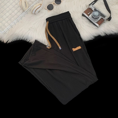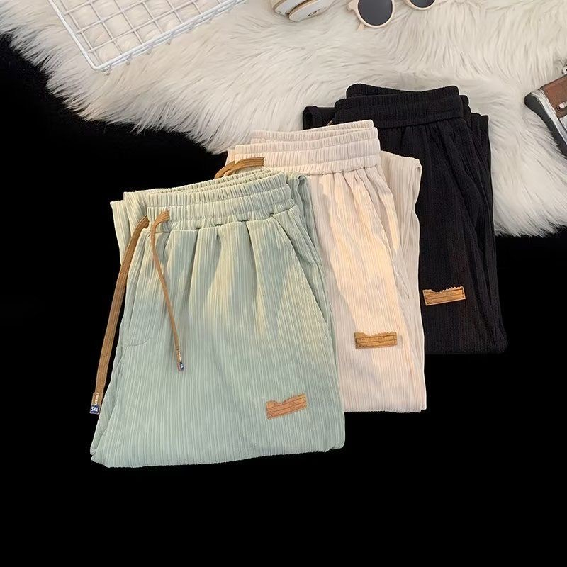 Ice Silk Long Sweat Pants Unisex Fashion Korean Simple Casual Wide Leg Seluar Panjang Fresh Soft Summer Loose 休闲运动长裤男女