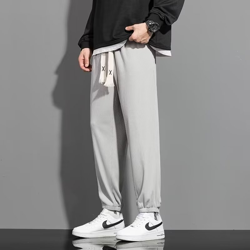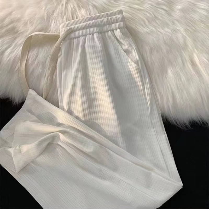 Ice silk quick drying Fashion Korean Simple Solid Color Casual Sports Pants Men Summer New Comfortable Loose Versatile Junior Student Straight Women Leg Pants