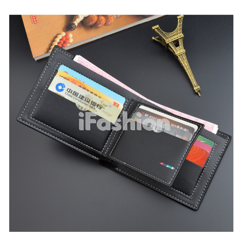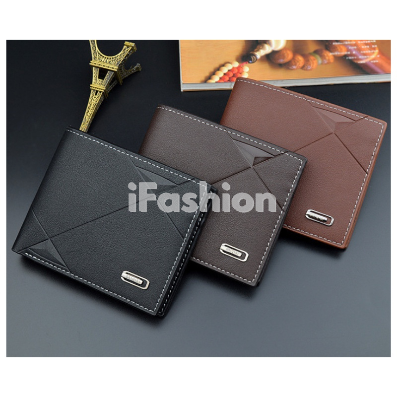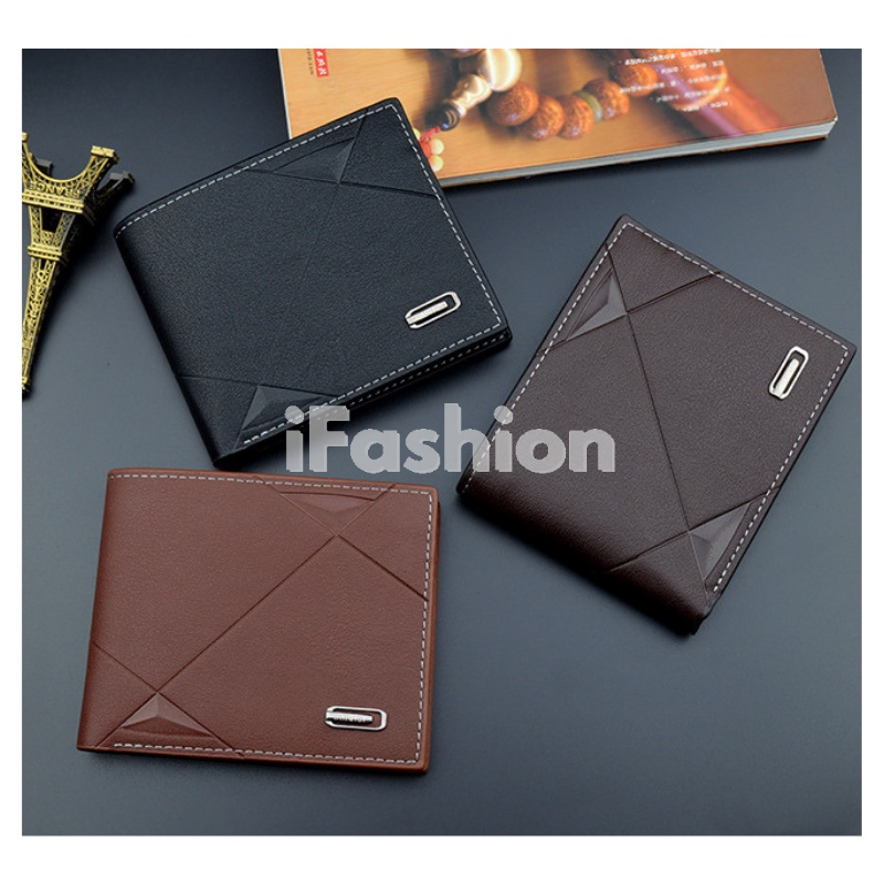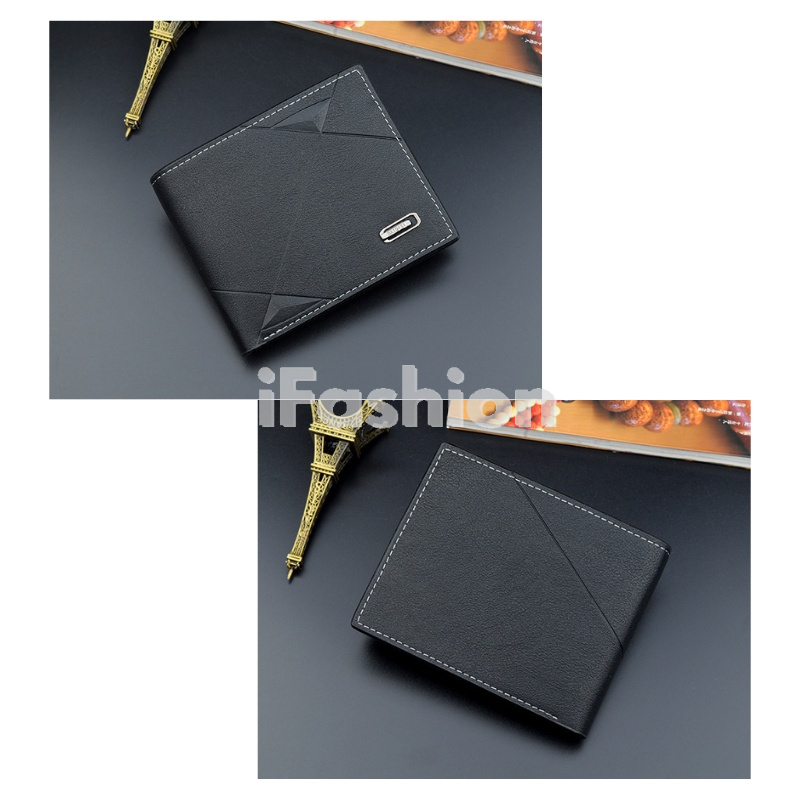 iFASHION READY STOCK Men Short Wallet Bi-Fold Purse Pouch Zipper Pocket Lelaki Dompet Pendek Murah 1265