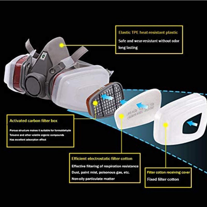 [IN STOCK] 7in1 6200 N95 Grade Anti Gas Anti Poison Mask Half Face Safety Respirator Mask Filter Dust Chemical Painting