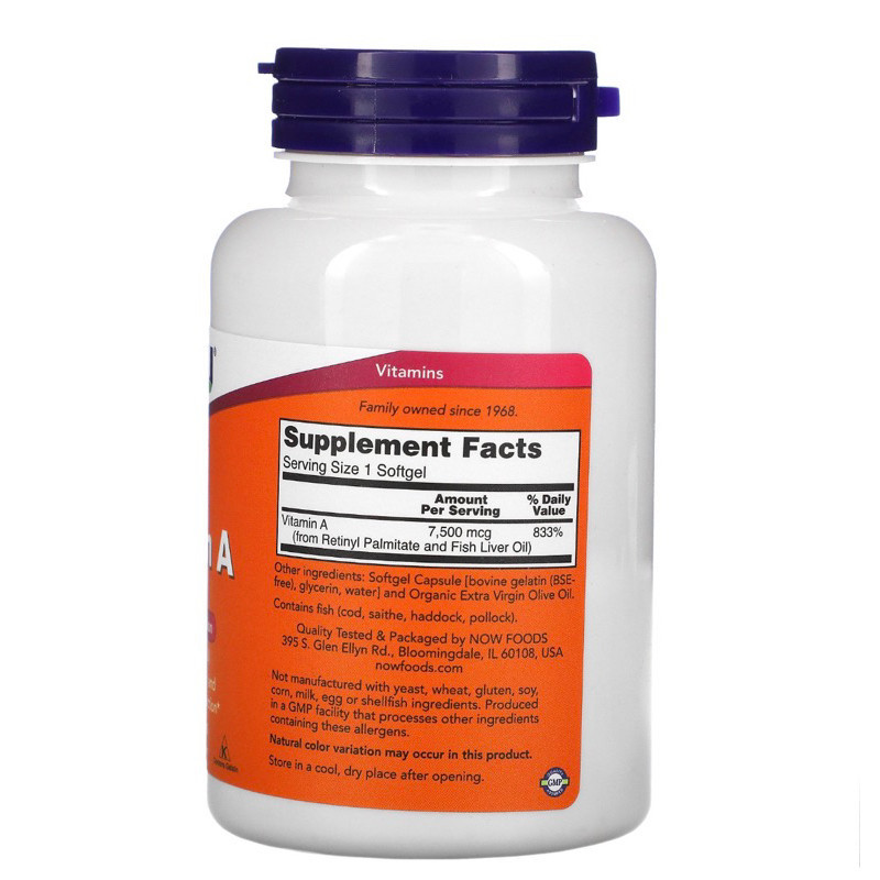 ✅✅IN STOCK✅ Now Foods Vitamin A, 10,000 / 25000 IU, 100 / 250 Softgels (Fish liver oil) One4
