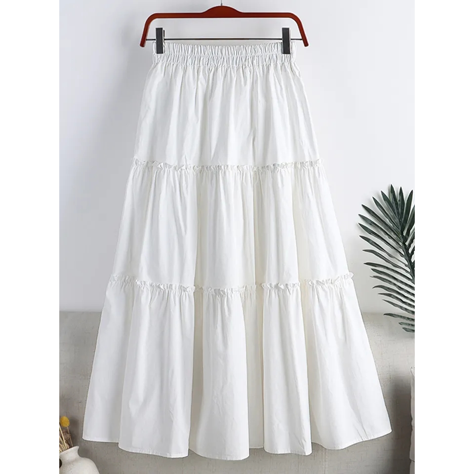 Inara Skirt – 3-Layer Syari Hijab White Plain Bottom Skirt with Wide Neci Lace Span for Teenage Girls Ages 4 to 13 Years Long Korean Maxi Skirt