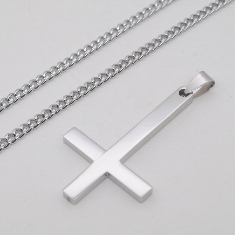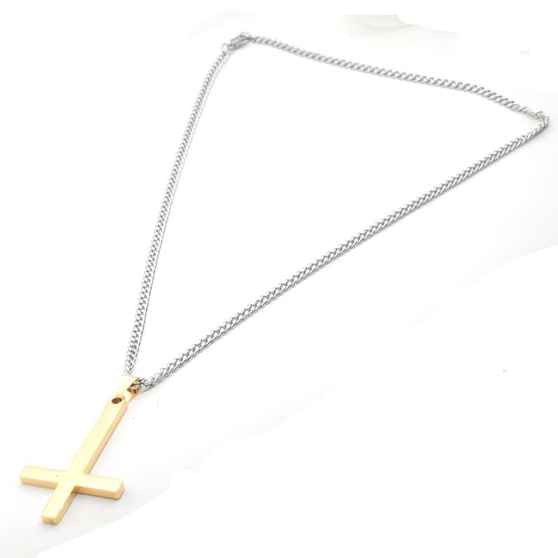 ✿inf✿Stainless Steel Upside Down Cross Necklace Inverted Cross Pendant with Chain